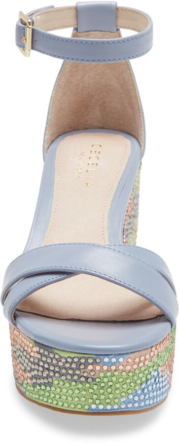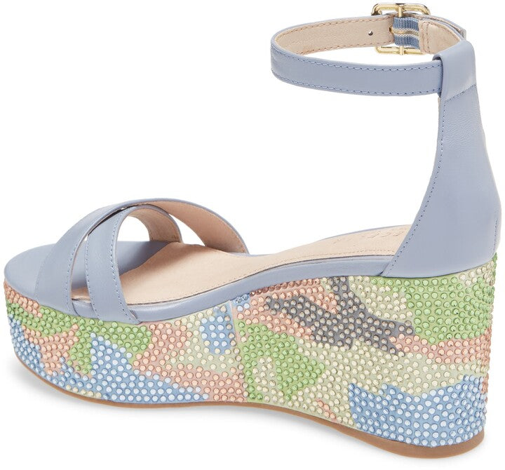 Cecelia New York Bella Camo Crystal Detailed Platform Ankle Strap Wedges Sandals