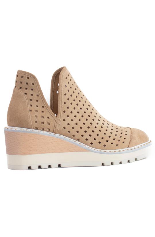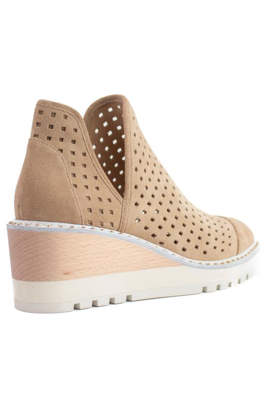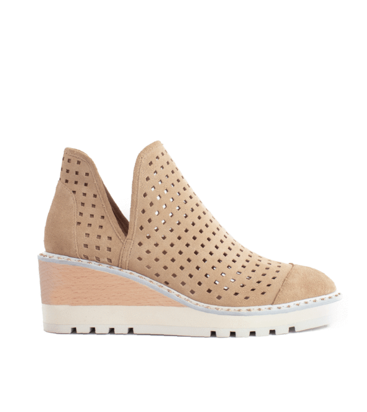 Cecelia New York Georgie Warm Sand Nude Wedge Cut Out Perf Ankle Boot Bootie