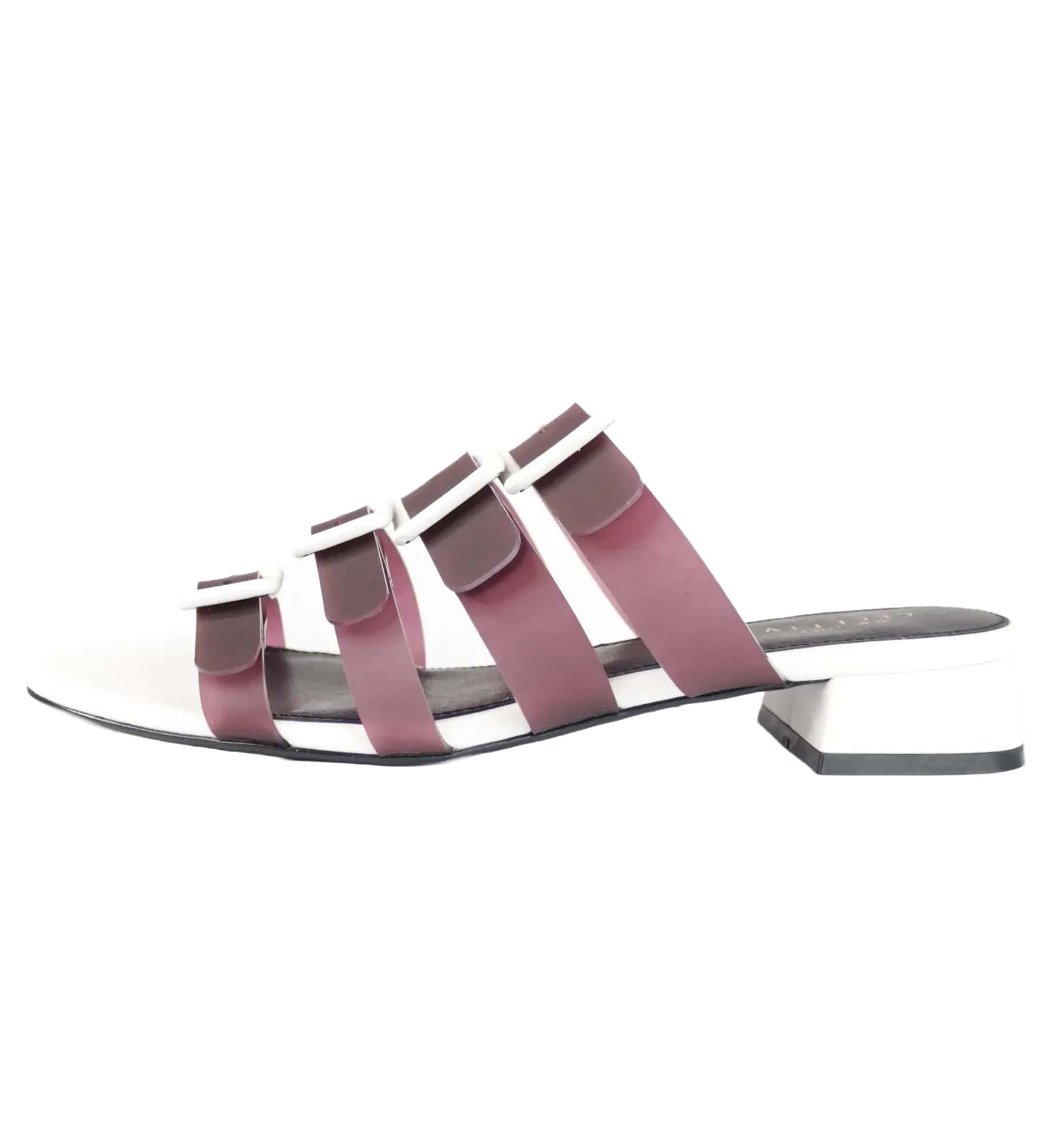 Cecelia New York Lexington Black White Buckle Straps Open Toe Heel Slide Sandals