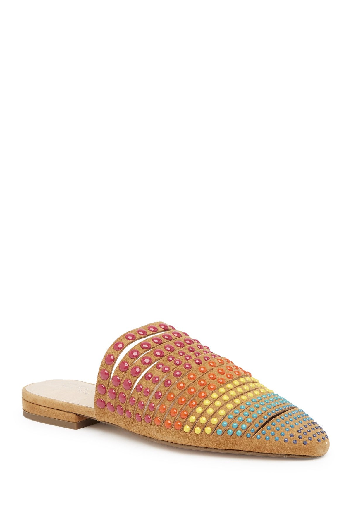 Cecelia New York Potz Pointed Toe Tan Multi Color Strappy Leather Mules Slides