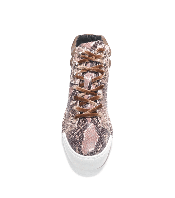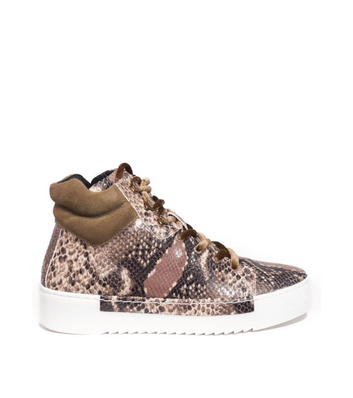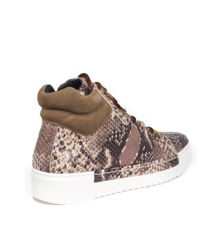 Cecelia New York Silow Leather Platform Lace-up Sneaker Beige Natural Snake