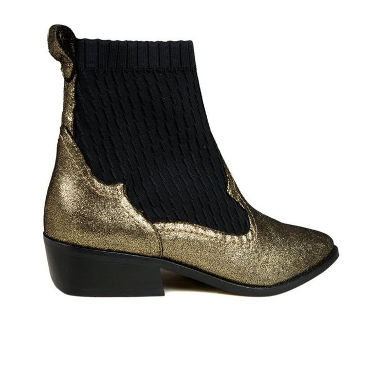 Cecelia New York Tomas Black Gold Sock-Knit Leather Almond Toe Western Bootie