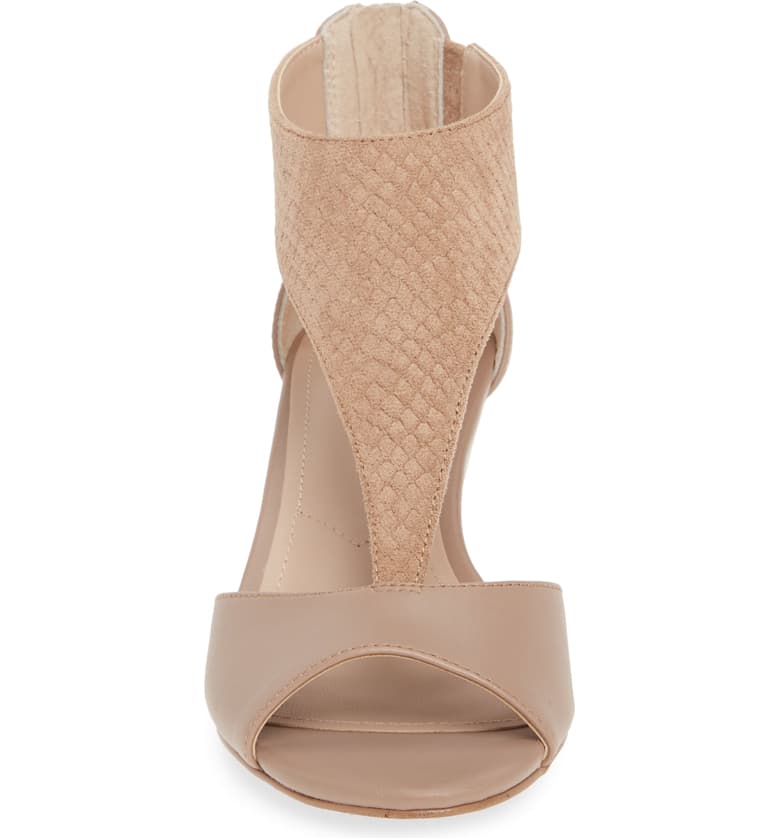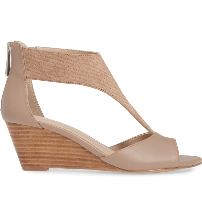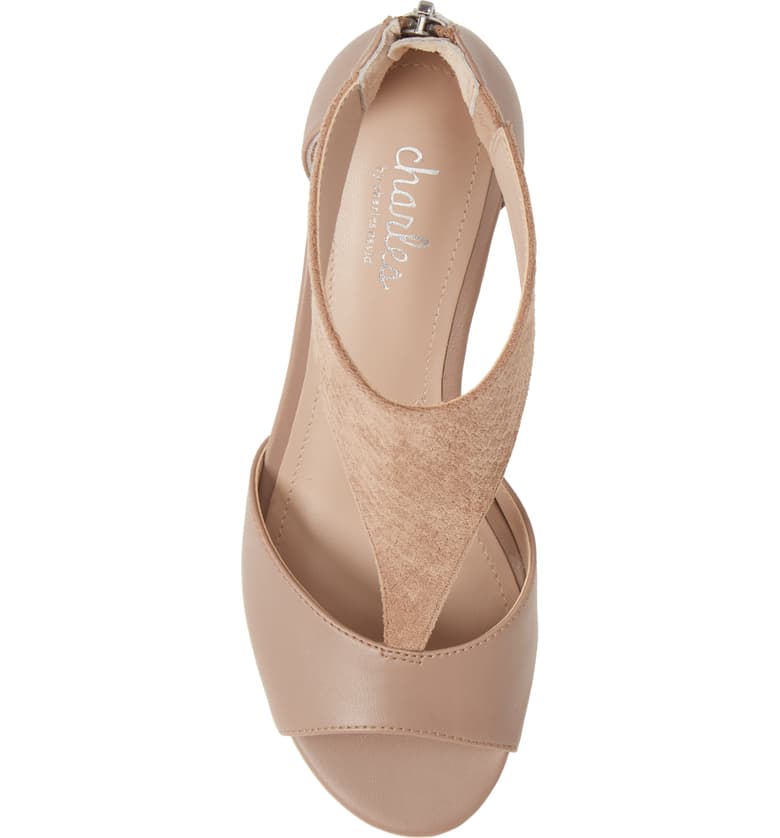 Charles David Gallo T-strap Sandal LATTE Nude Leather Low Wedge Heeled Open Toe