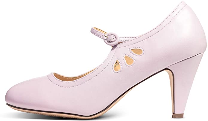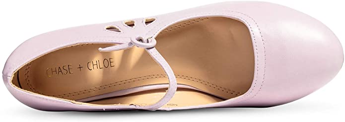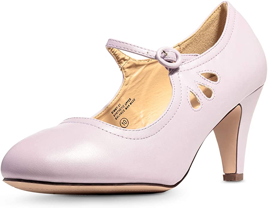 Chase & Chloe Kimmy-21 Round Toe Mid Heel Mary Jane Dress Pumps Lavender