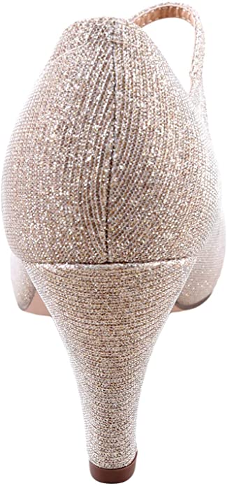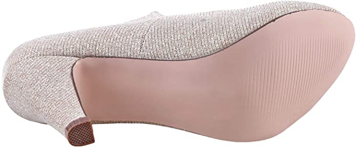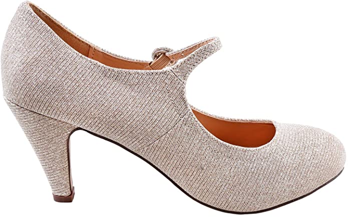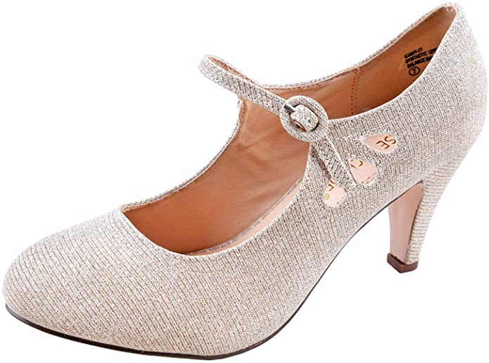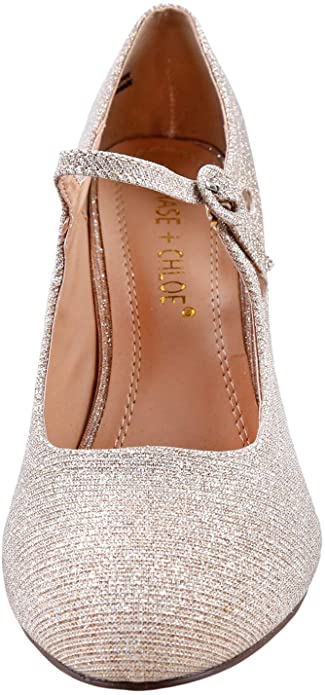 Chase & Chloe Kimmy-21 Round Toe Mid Heel Mary Jane Dress Pumps Nude Glitter