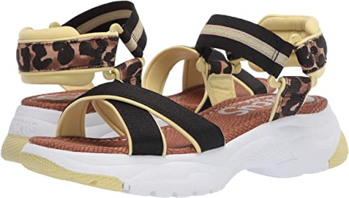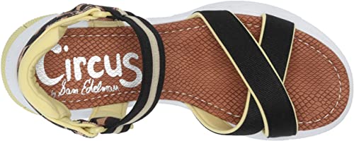 Circus by Sam Edelman Anderson Black Natural Ankle Strap Flat Sandal Lemon Drop