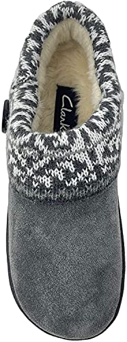 Clarks Amanda Fairisle Grey Indoor Outdoor Clog Rounded Closed Toe Winter Mules
