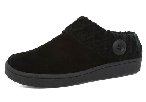 Clarks Suede Leather Knitted Collar Clog Plush Faux Fur Lining Slippers All Black