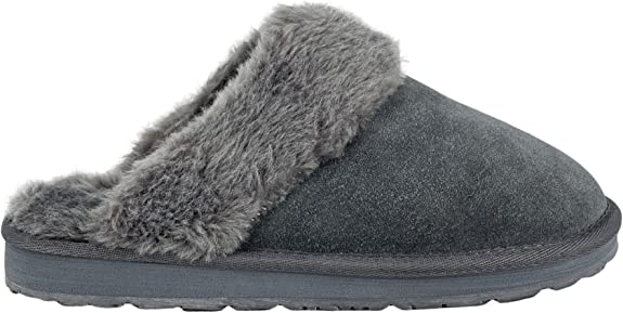 Clarks Womens Open Back Suede Leather Comfort Clog Slipper JMS0583C - Plush Faux Fur Trim - Indoor Outdoor House Slippers For Women
