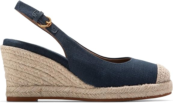 Cole Haan Cloudfeel Espadrille Sling Navy Blazer Linen Wedge Heeled Sandals