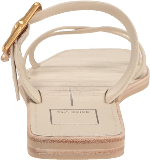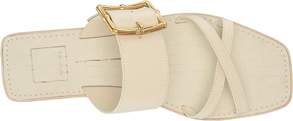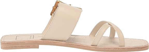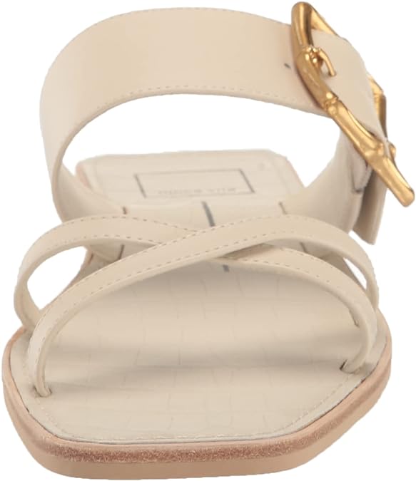 Dolce Vita Lowyn Ivory Leather Slip On Buckle Detailed Squared Toe Flat Sandals