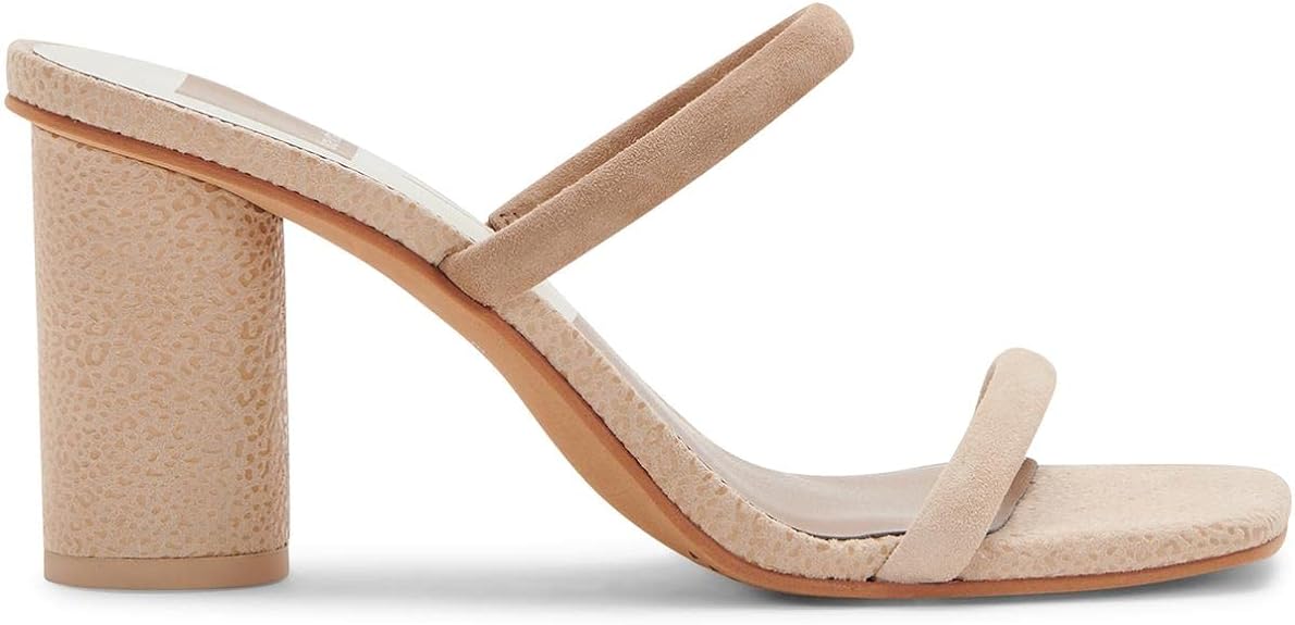 Dolce Vita Noles Dune Suede Slip On Squared Open Toe Strappy Heeled Sandals