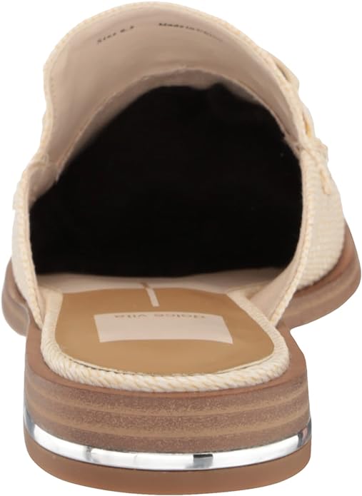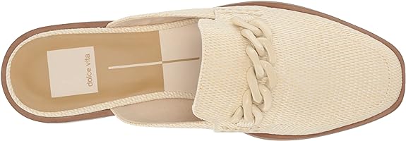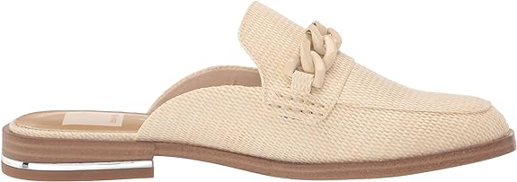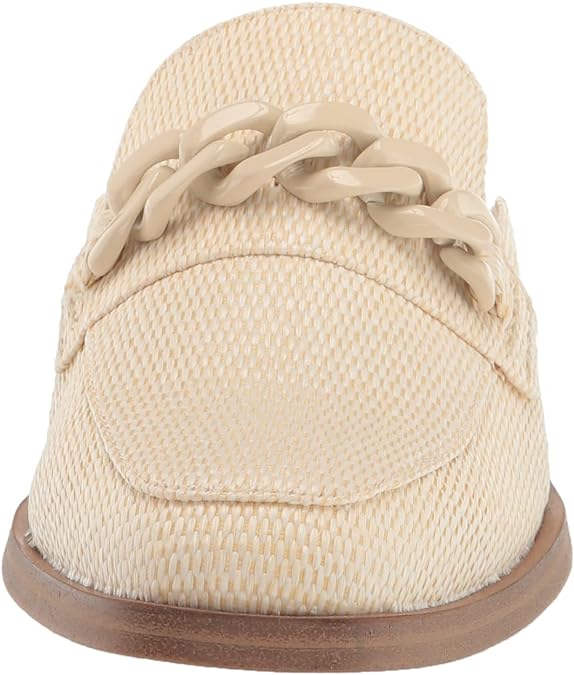 Dolce Vita Pela Ivory Raffia Slip On Rounded Toe Chain Detail Flat Dress Loafers
