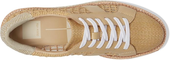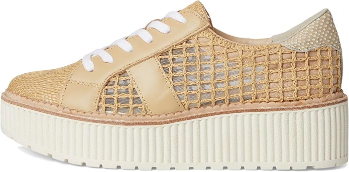 Dolce Vita Tiger Lt Natural Raffia Lace Up Chunky Platform Low Top Sneakers