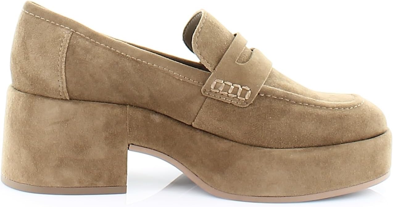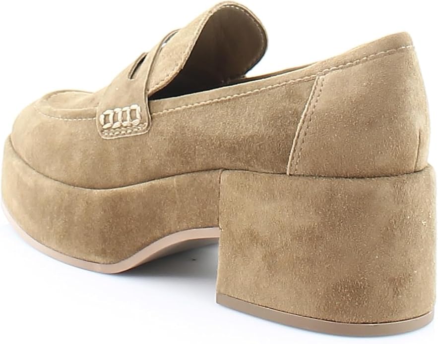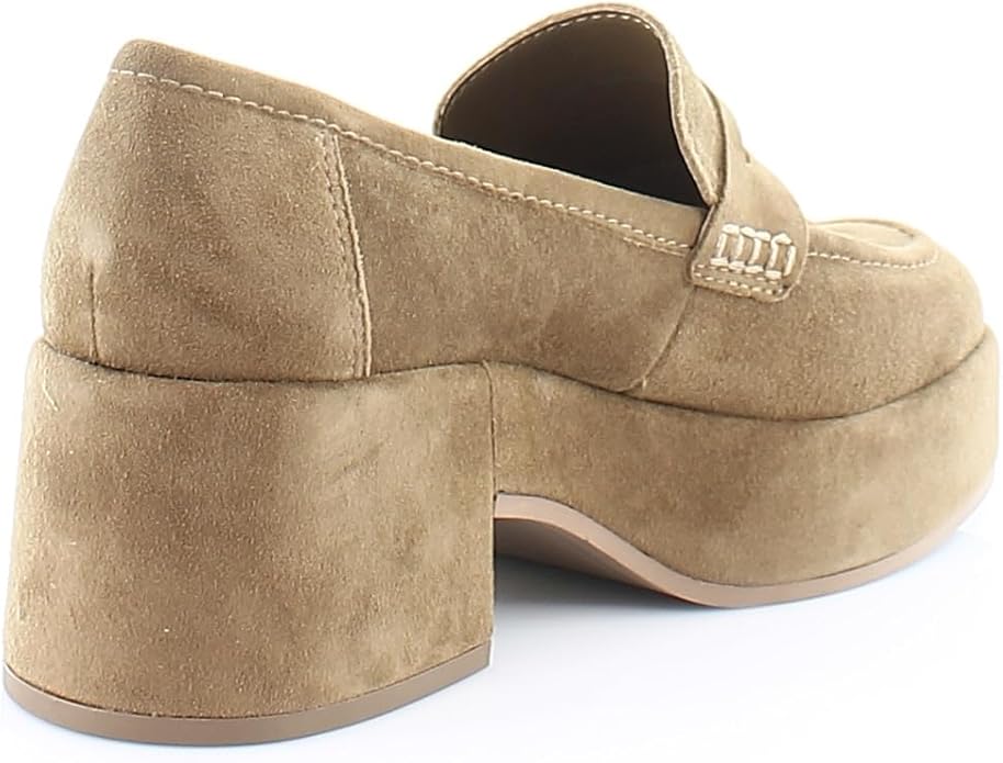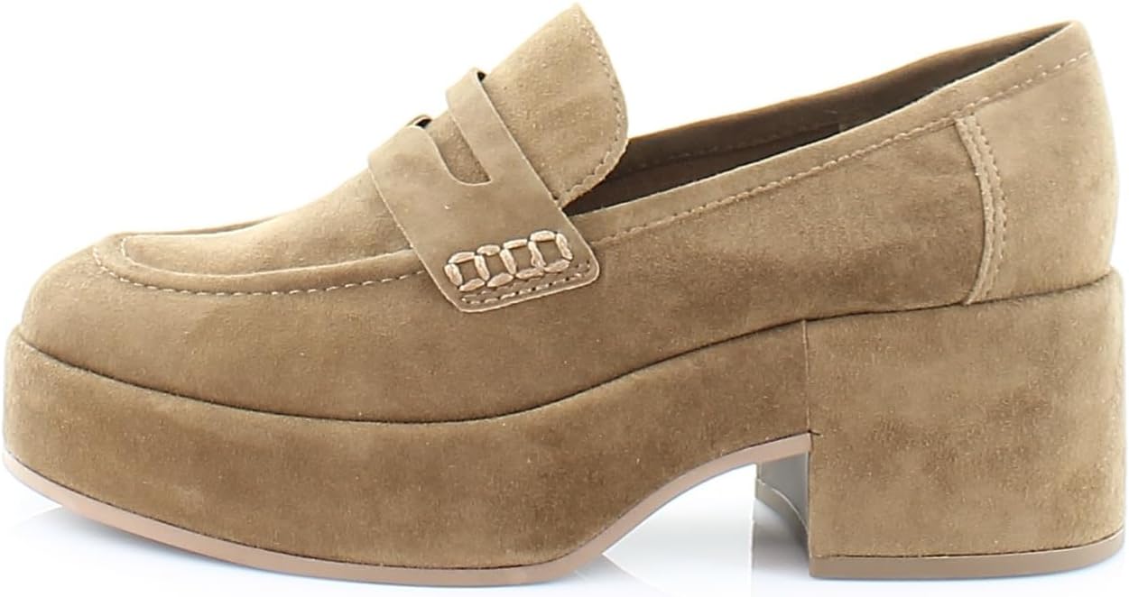 Dolce Vita Yanni Chestnut Suede Slip On Round Toe Block Heeled Fashion Loafers