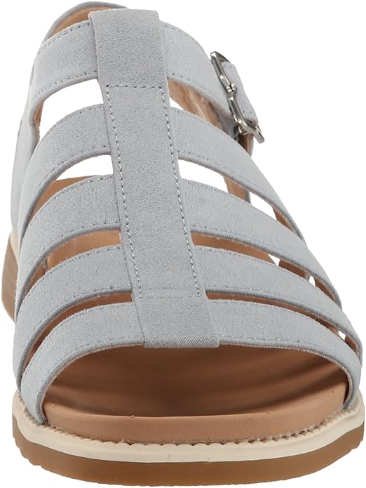 Strappy womens sandals that look good, feel good, do good. SUSTAINABLY CRAFTED: Linings made from low-chemical faux leather. MATERIALS: Faux leather straps. FIT: Instep strap with adjustable buckle closure. SUSTAINABLE COMFORT: Insole Technology with cushioning, comfort, & support. MOVEMENT: Lightweight, flexible construction moves with you. STYLE: Fisherman sandal with iconic buckle detail, cushioned footbed, and 1 1/3 inch heel. CONSCIOUSLY PACKAGED: This style is shipped in a box made with recyclable materials & soy-based inks. Soak up rays for days in these gladiator sandals for women with standout details and cushioned comfort.