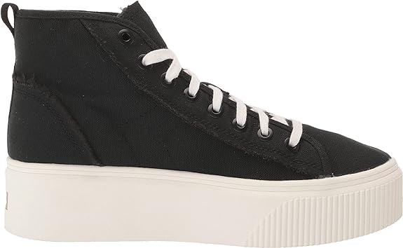 A womens lace-up, high-top fashion sneaker with a funky platform sole and feel-good comfort. SUSTAINABLY CRAFTED: Linings and topcloth made from recycled bottles. MATERIALS: Canvas fabric made from recycled plastic bottles. FIT: Lace-up front for a secure fit. SUSTAINABLE COMFORT: Insole Technology with cushioning, comfort, & support. Insoles crafted with cushy, algae-infused BLOOM foam for cleaner air and water. STYLE: Sporty high-top fashion sneaker with stitched chevron detail and 2 1/4 inch platform sole. CONSCIOUSLY PACKAGED: This style is shipped in a box made with recyclable materials & soy-based inks. Take any look to the next level in this happy high-top platform womens sneaker.