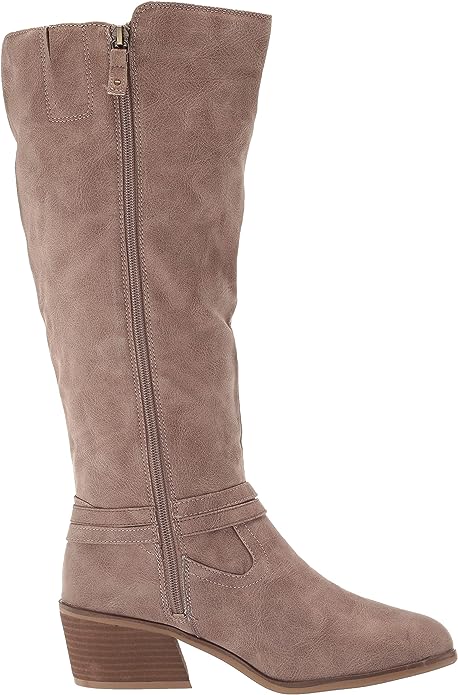 Dr. Scholl's Liberate Taupe Fabric Almond Toe Stacked Heel Knee High Boots