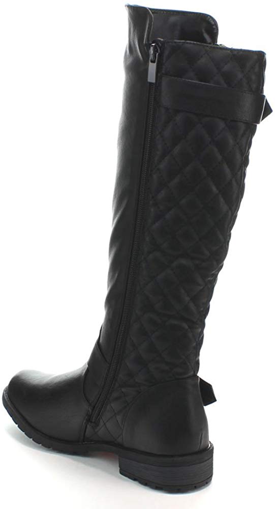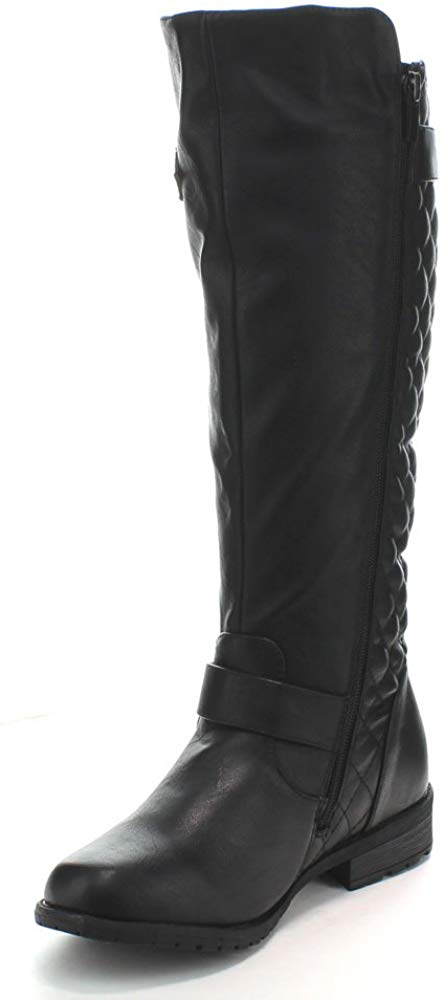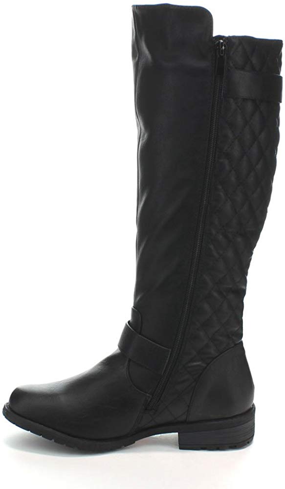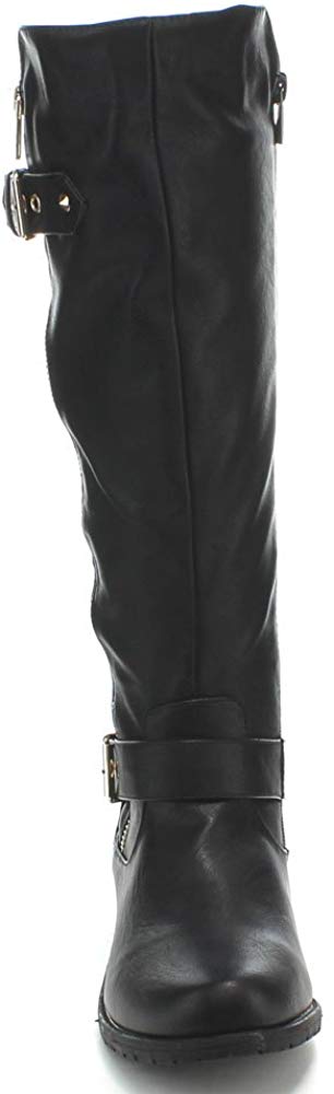 Forever Mango-21 Black Fashion Block Heel Buckled Zippered Lady Riding Booties