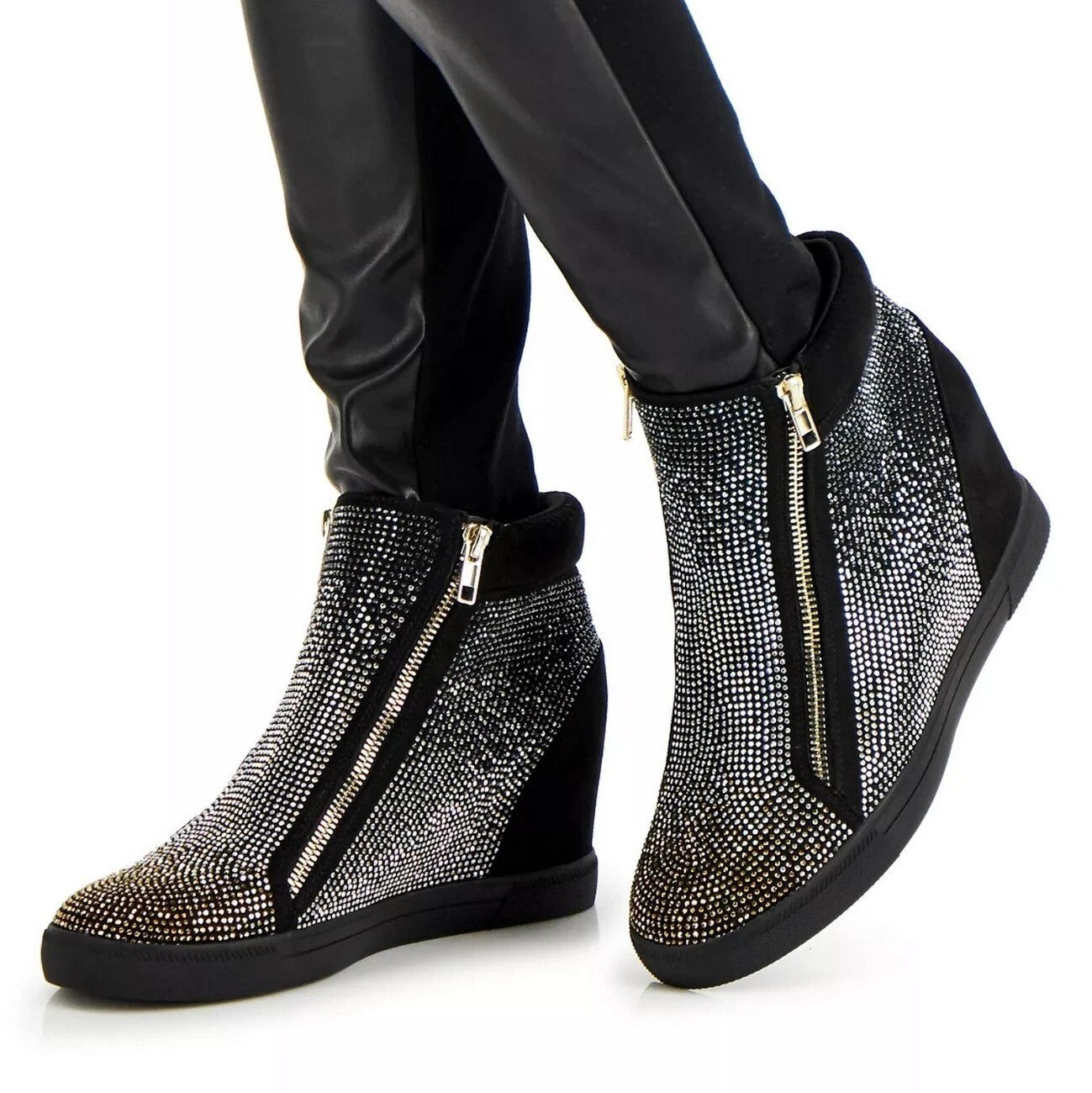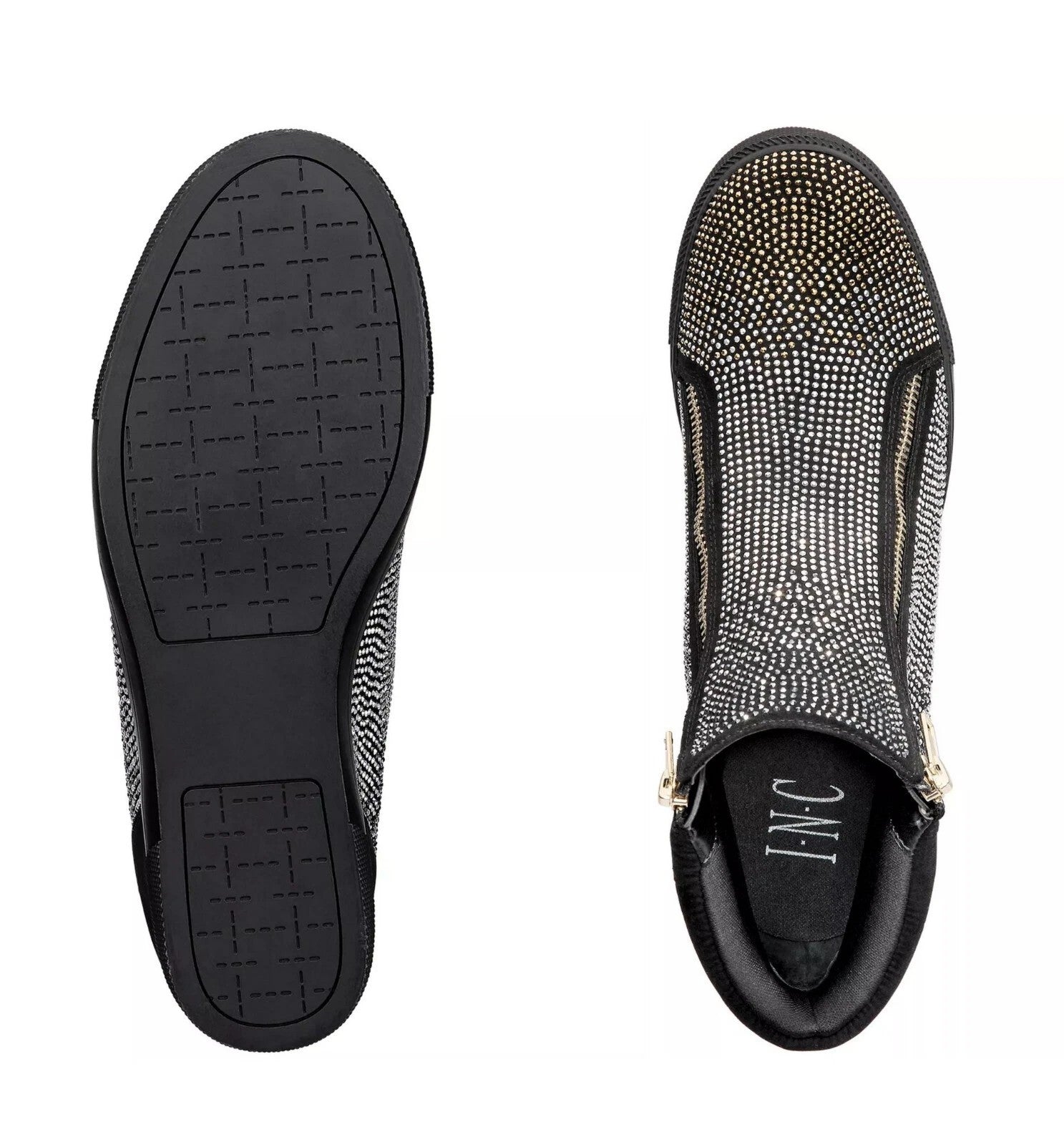 I.N.C Dollie Black Multi Fashion Rounded Toe Rhinestone Wedge Heel Ankle Boots 7.5