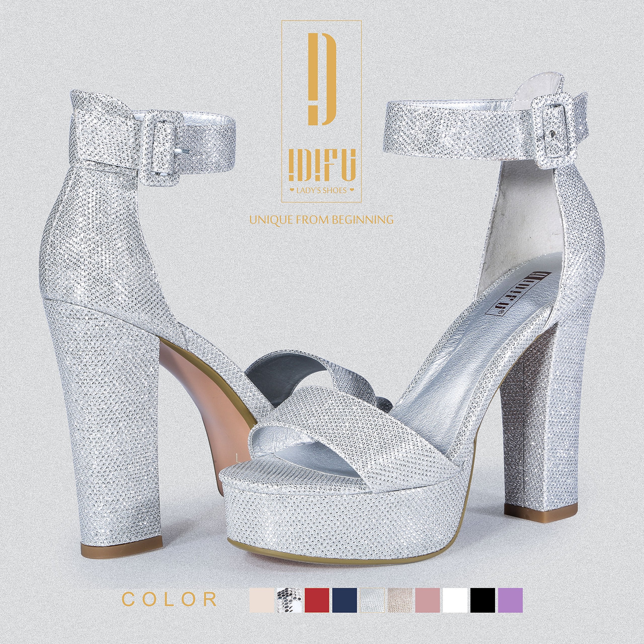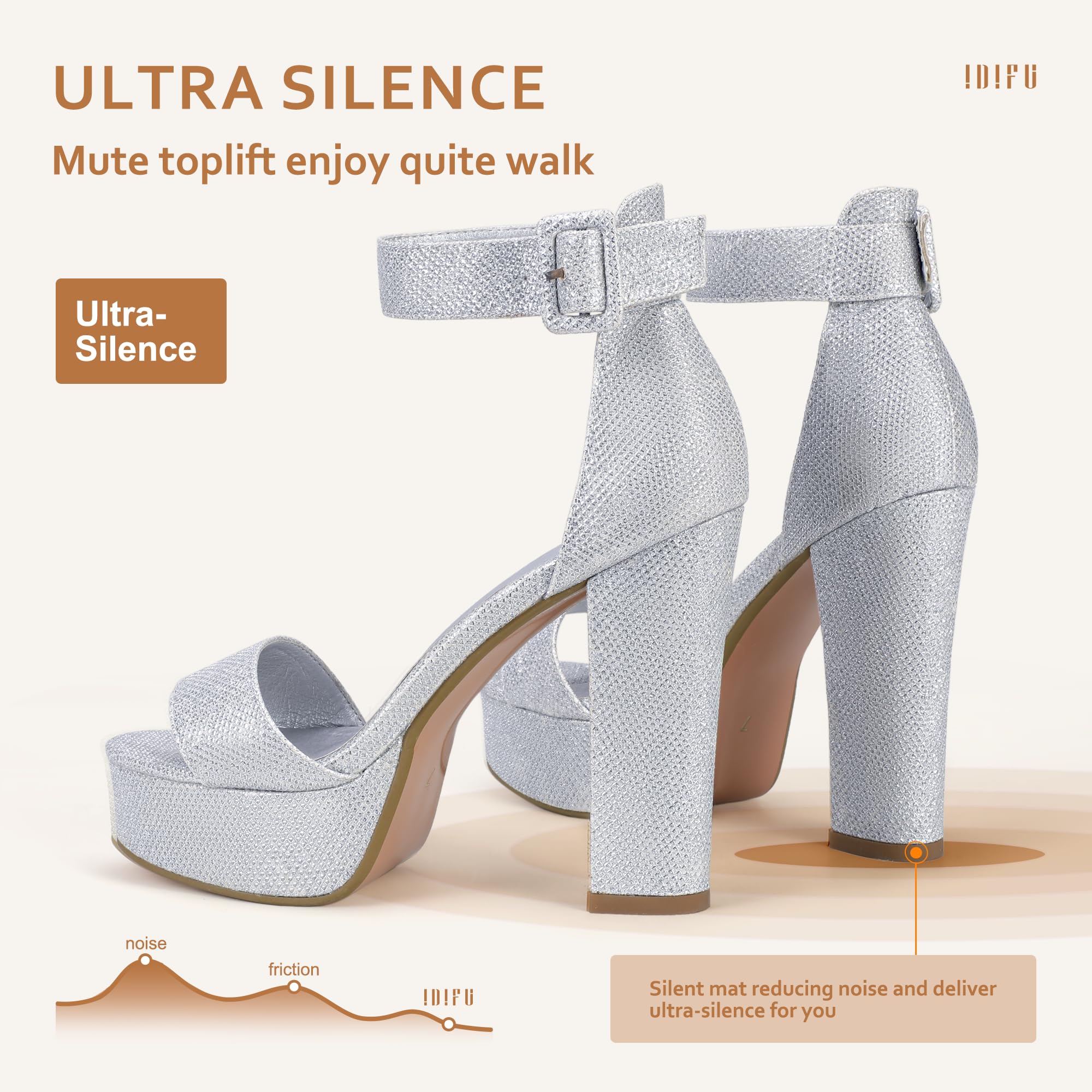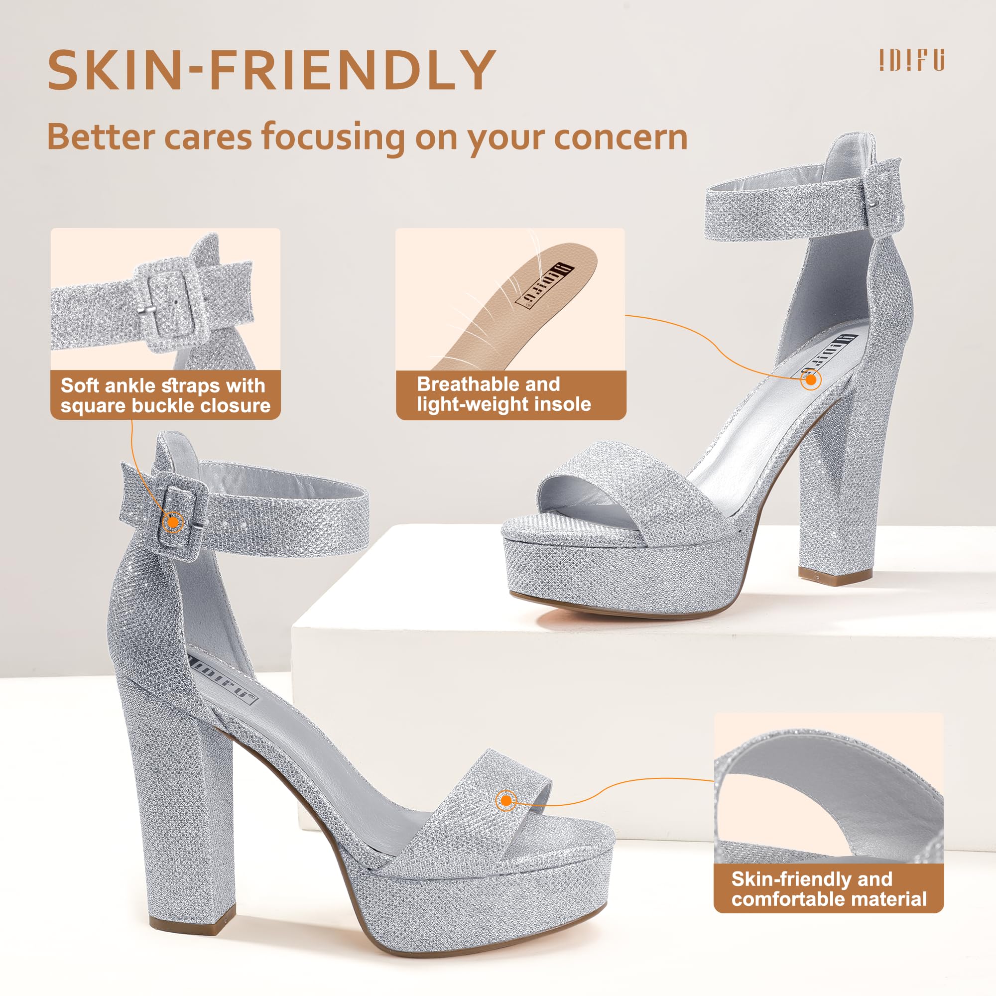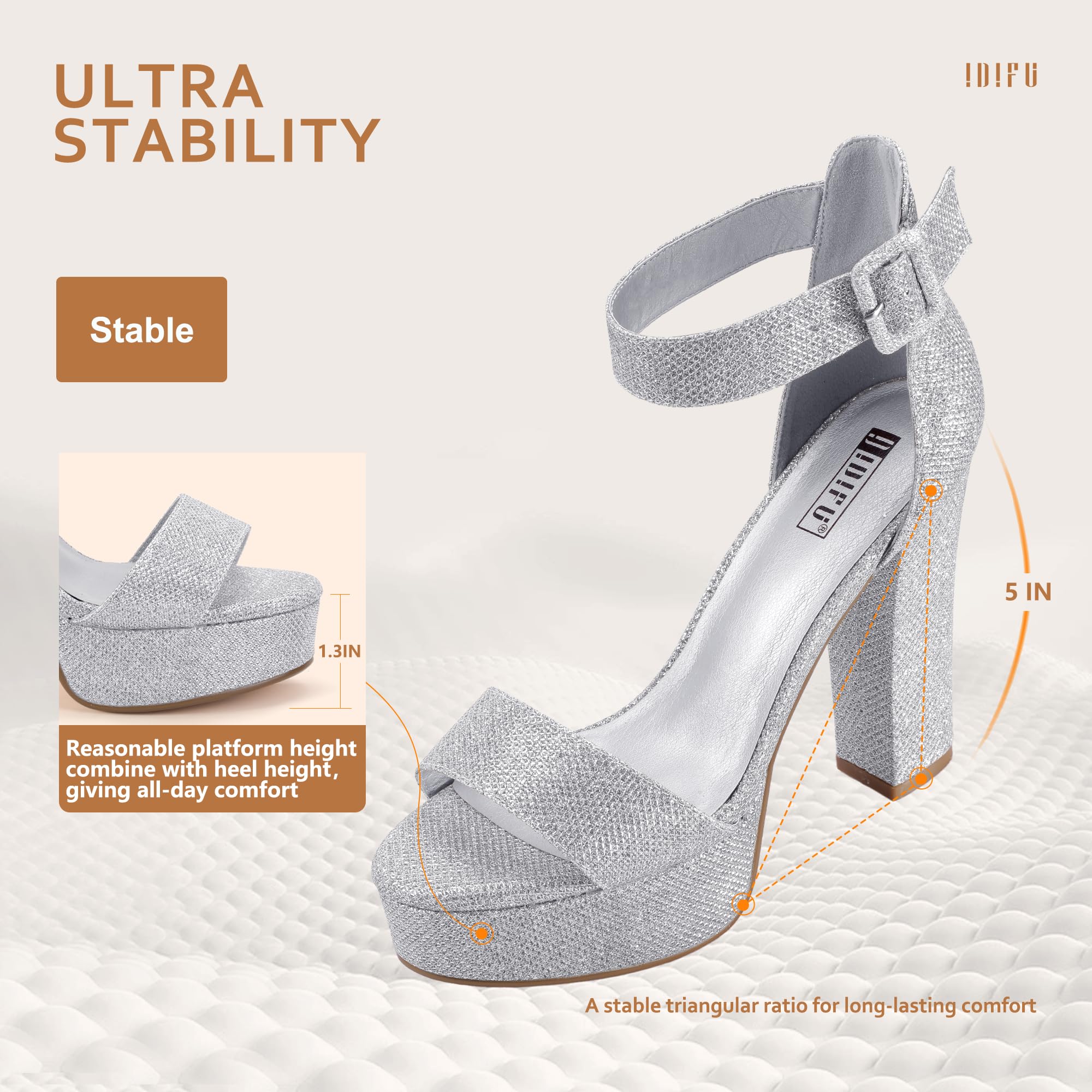 IDIFU Sabrina Platform High Heels Block Ankle Strap Heels Dress Heeled Sandals 8