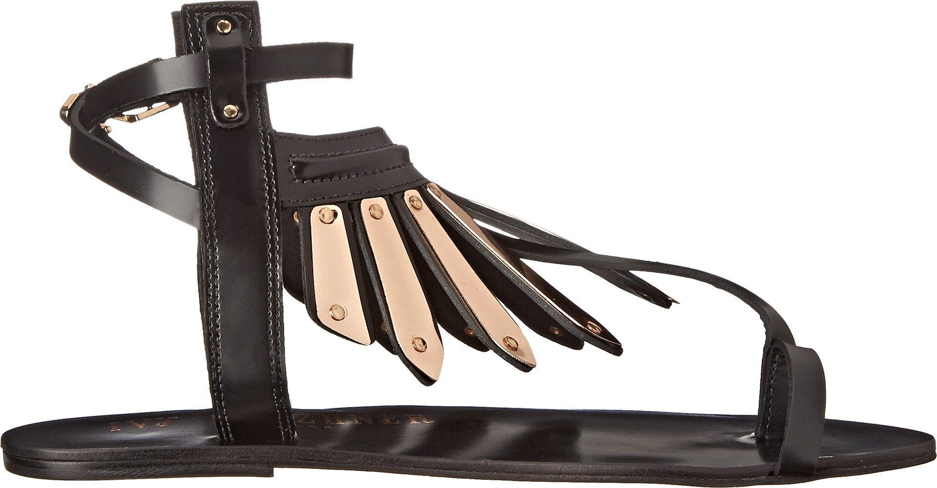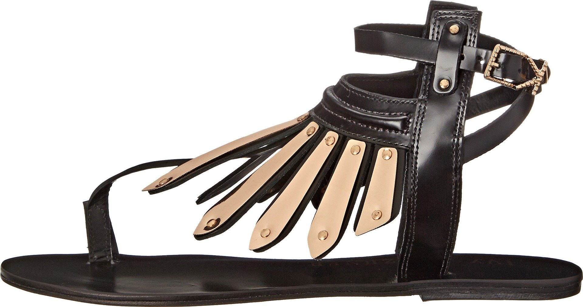Ivy Kirzhner Soleil Black Leather Fashion Ankle Strap Thong Flat Gold Sandals