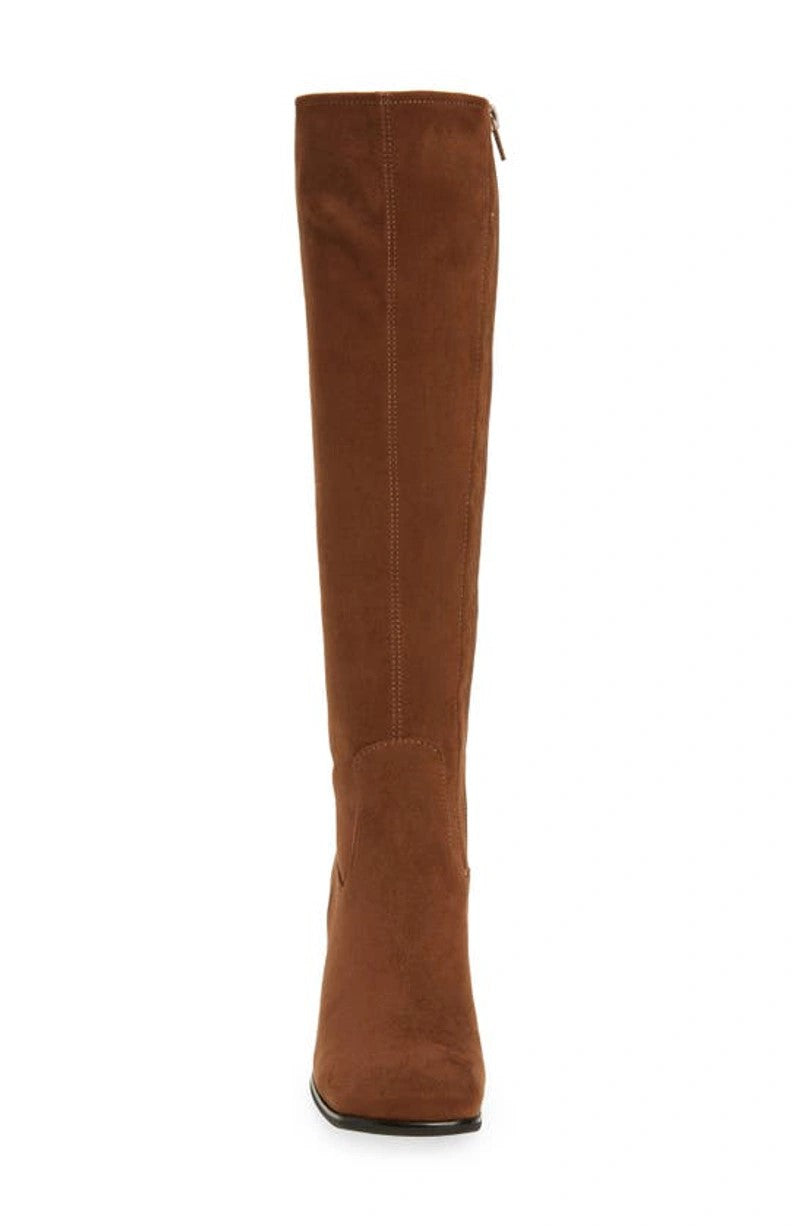 Jeffrey Campbell HOTLAVA-K2 Brown Suede Block Heel Squared Toe Knee High Boots