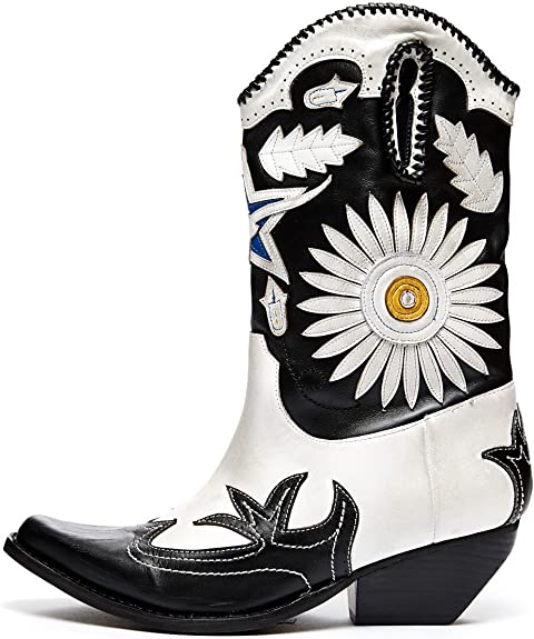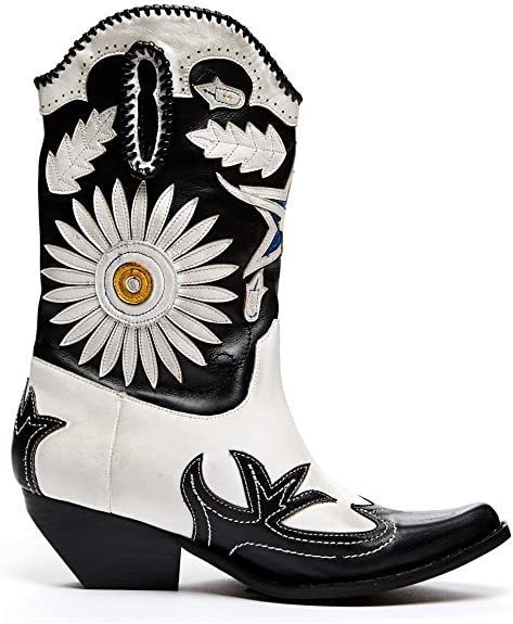 Jeffrey Campbell Texarkana Black Blue Combo Pull On Pointed Toe Mid-Calf Boots