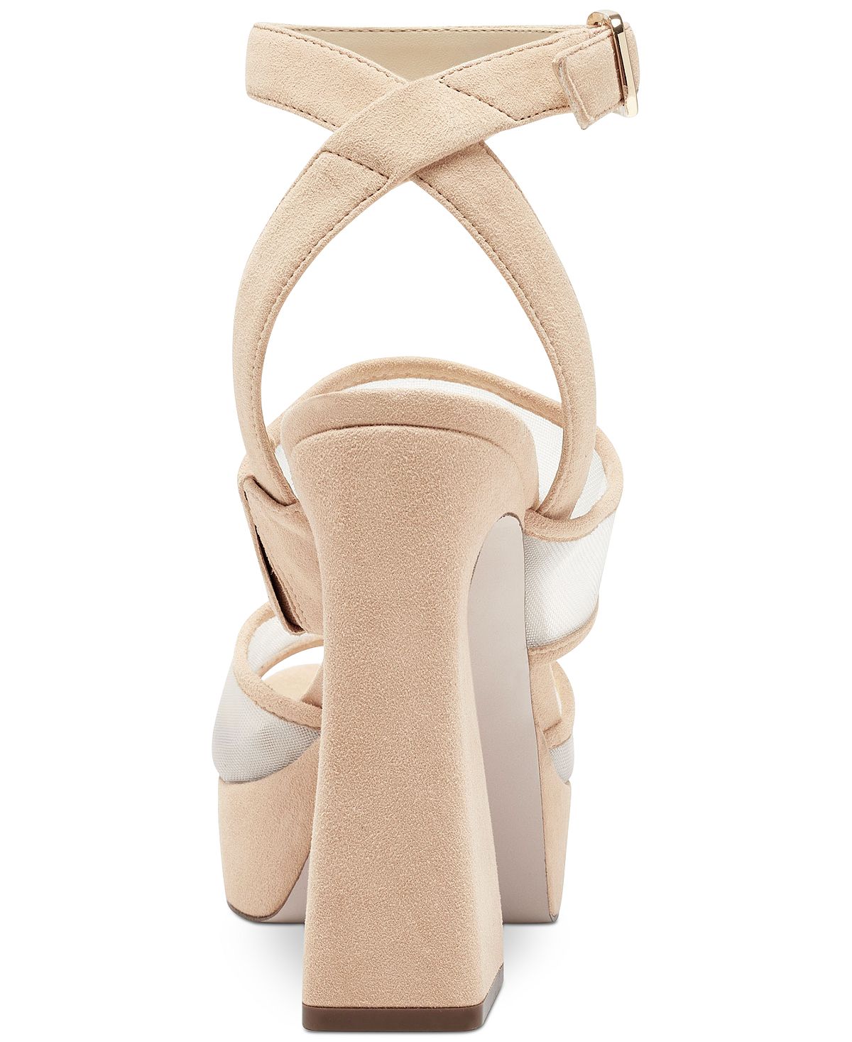Jessica Simpson Drixi Nude Mesh Block Heel Ankle Strap Open Toe High Heel Sandal