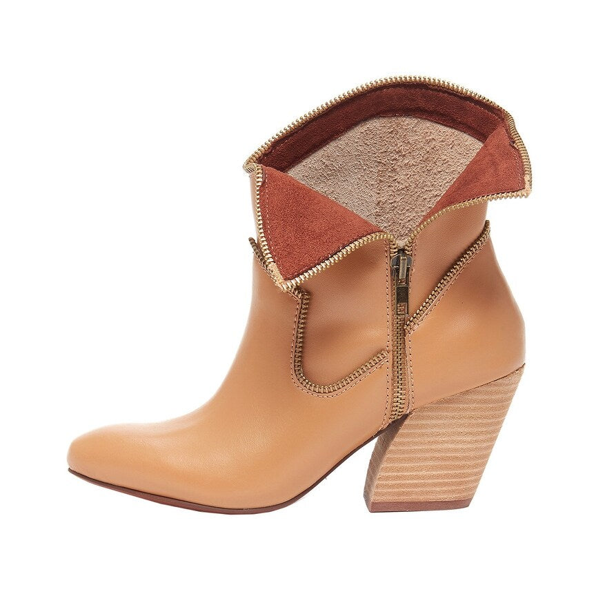Kelsi Dagger Ingrid Sandy Tan Leather Block Heel Leather Foldable Ankle Bootie