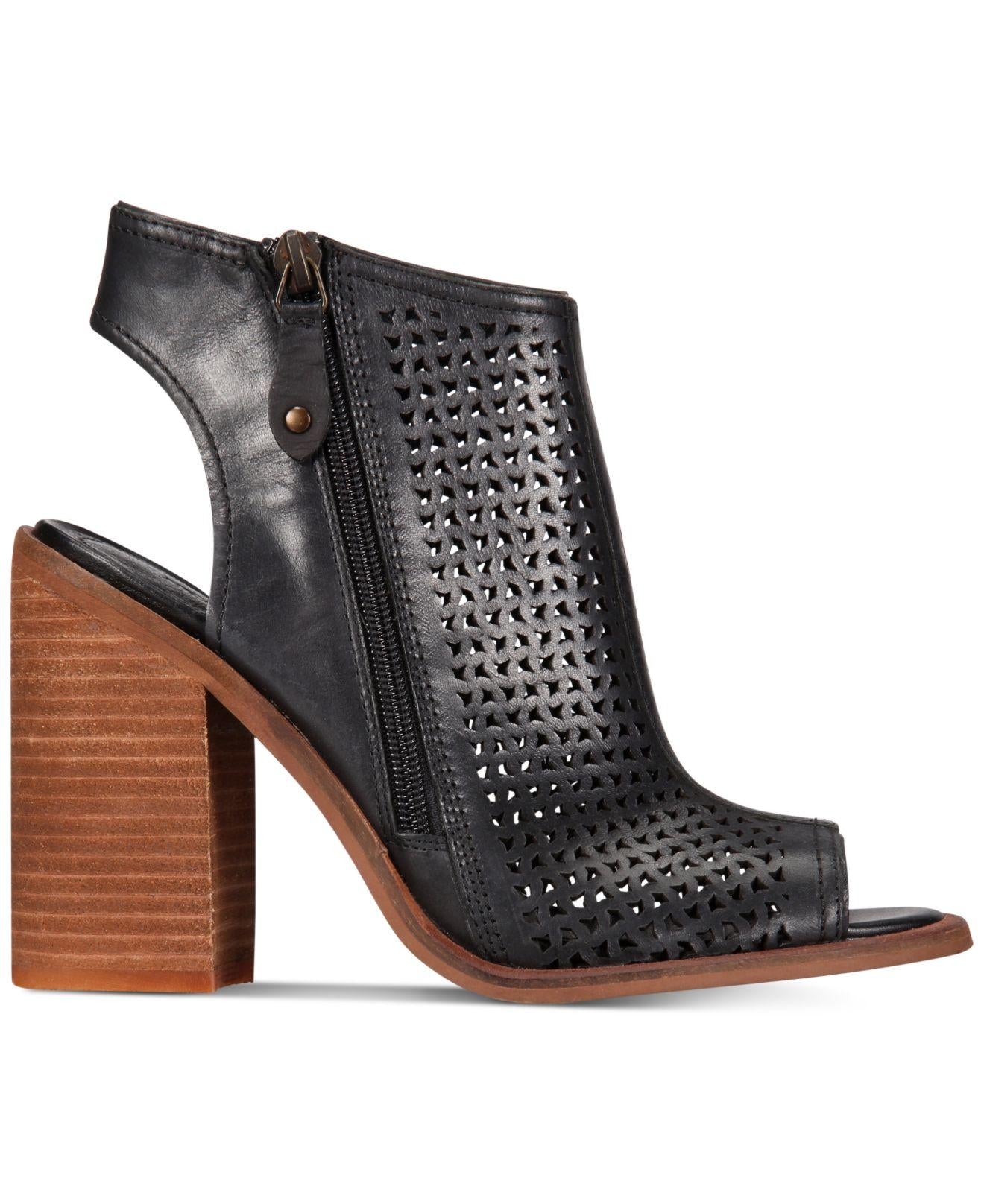 Kelsi Dagger Mason Black Leather Perforated Block-Heel Slip On Bootie Sandals
