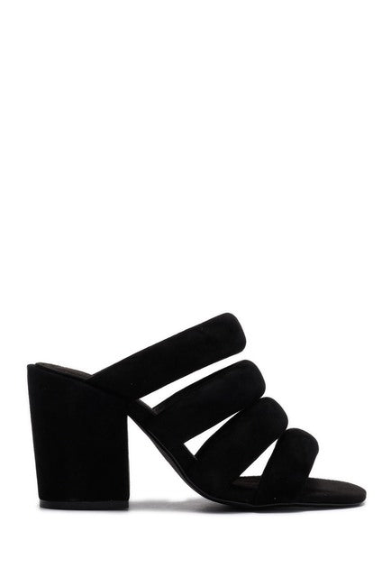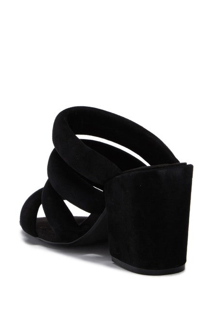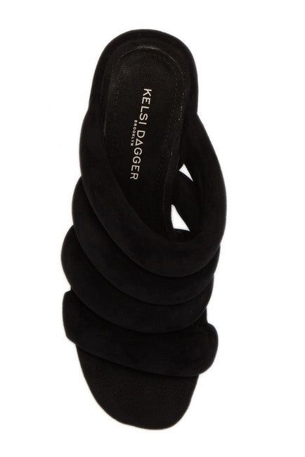 Kelsi Dagger Mell Black Leather Mule Slip On Wrapped Heeled Open Toe Sandals