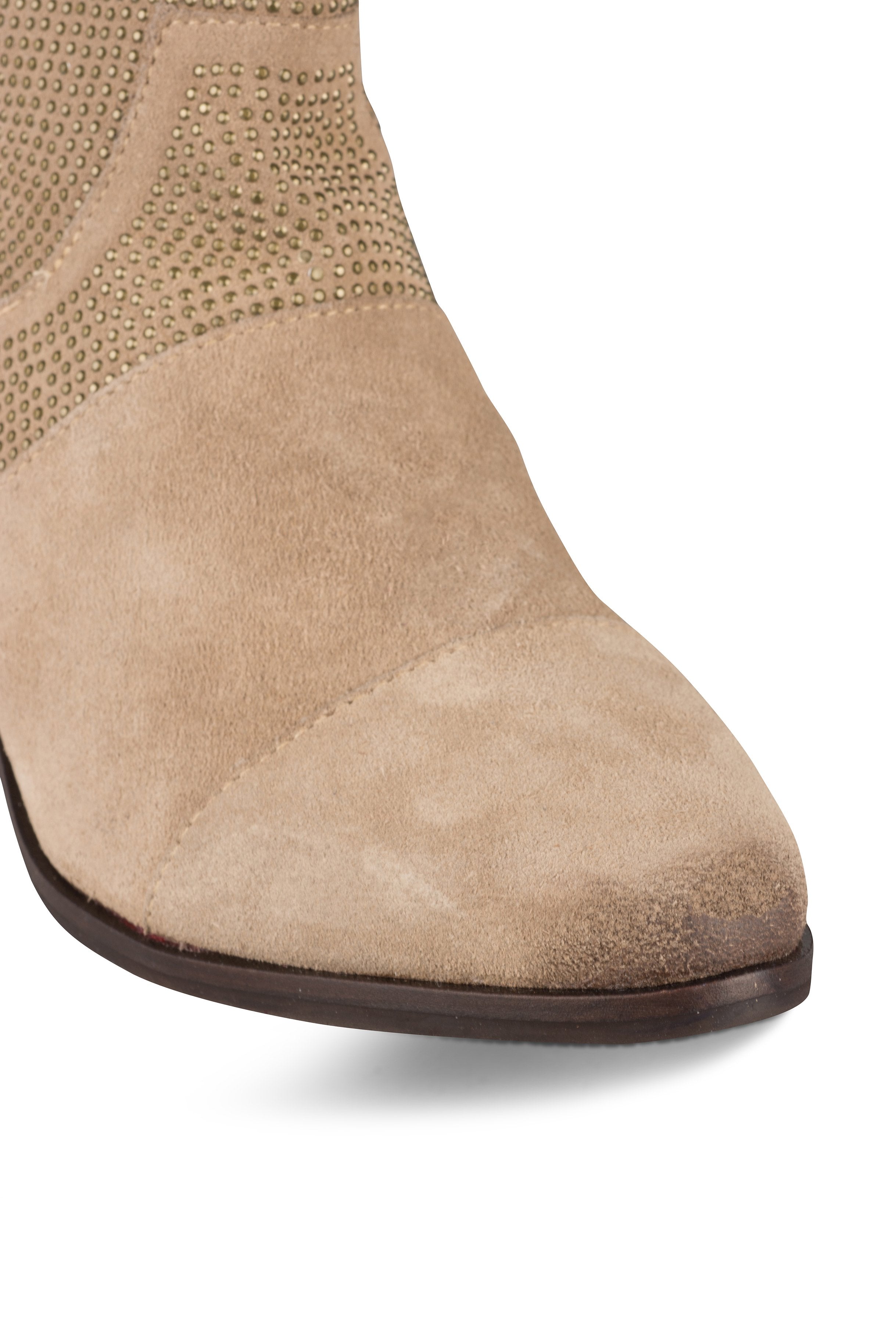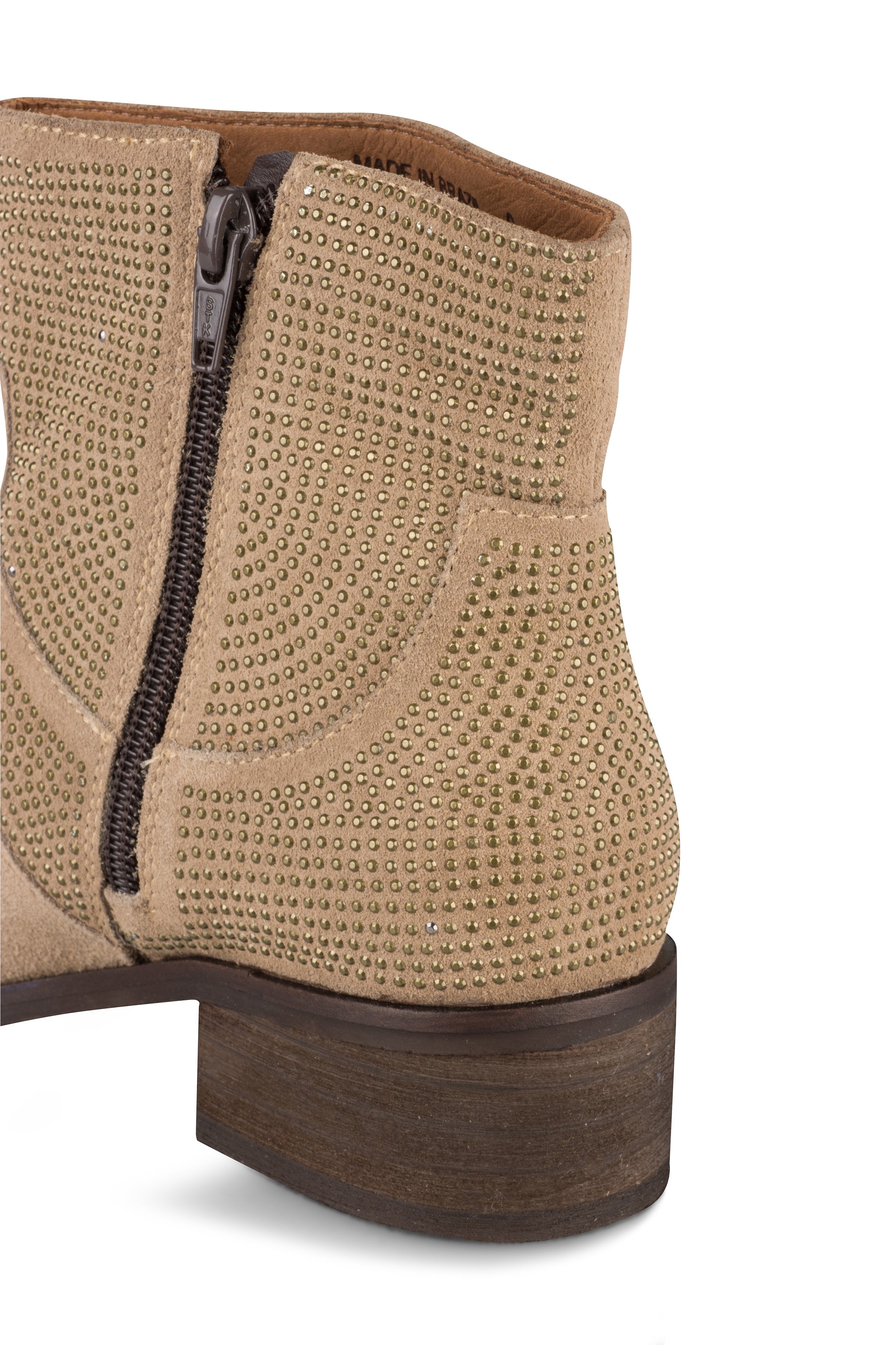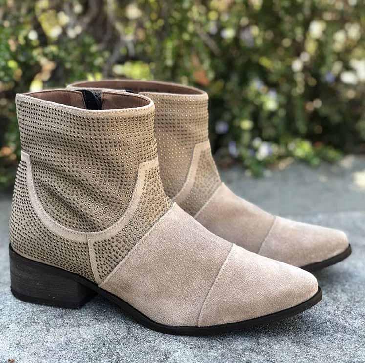 Subtle shimmer adds a touch of glam to these oatmeal colored studded ankle booties. These booties make a fashion-forward statement to your Fall outfit. Super comfy, the more you wear them the better they get. Go with everything!