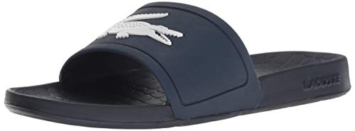 Lacoste Women's FRAISIER Slide Sandal, Navy White Synthetic