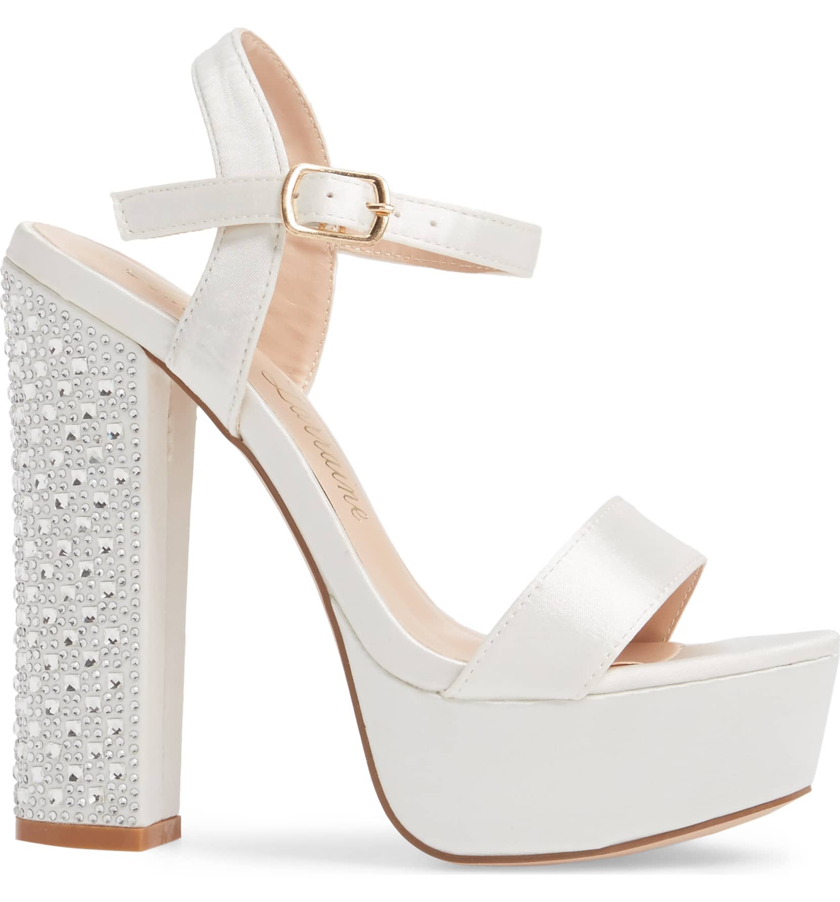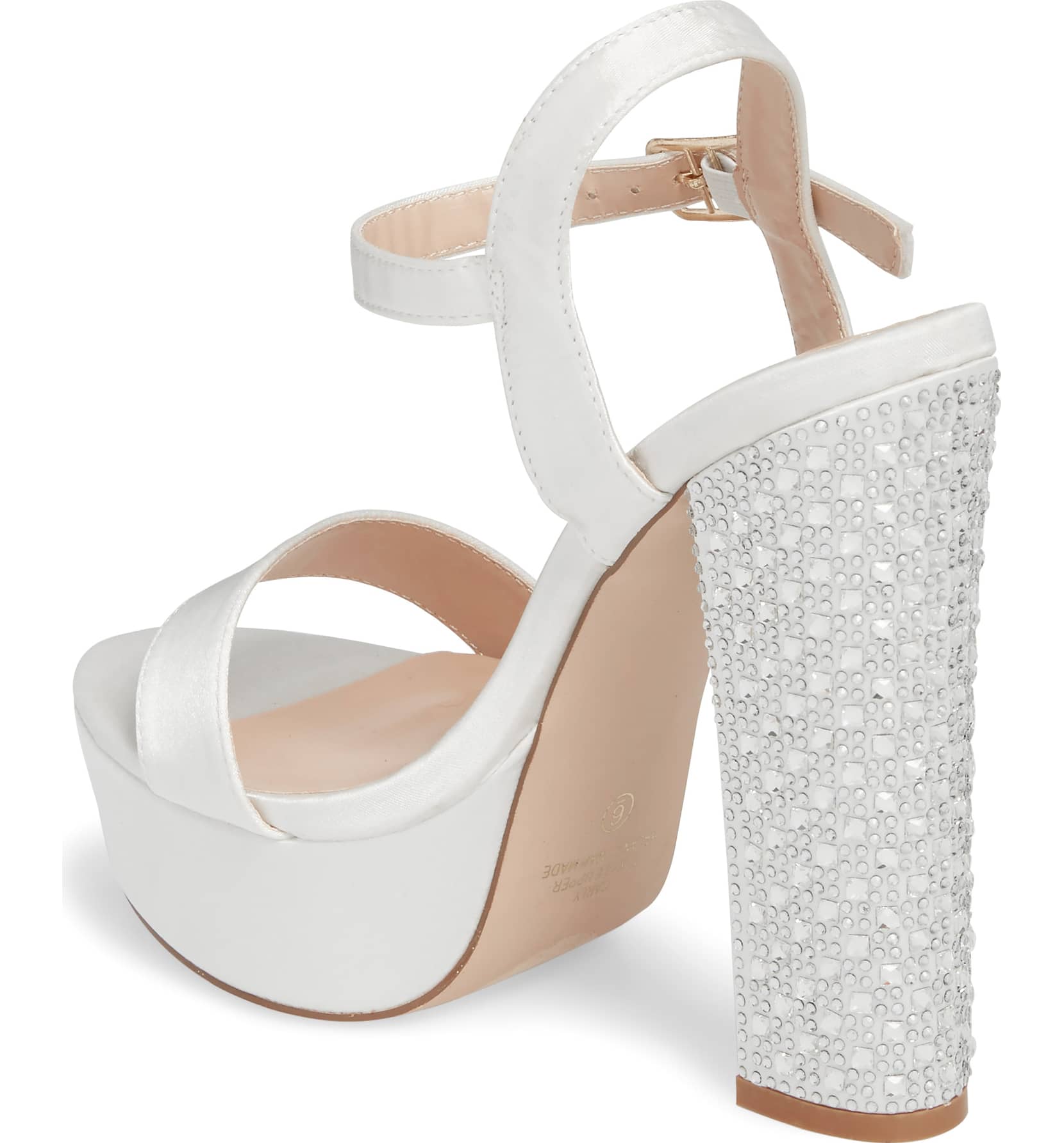 Carly Platform Sandal - Ivory A crystal-encrusted heel adds showstopping glamour to a lofty platform sandal.