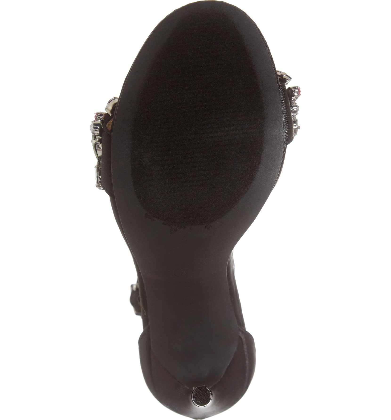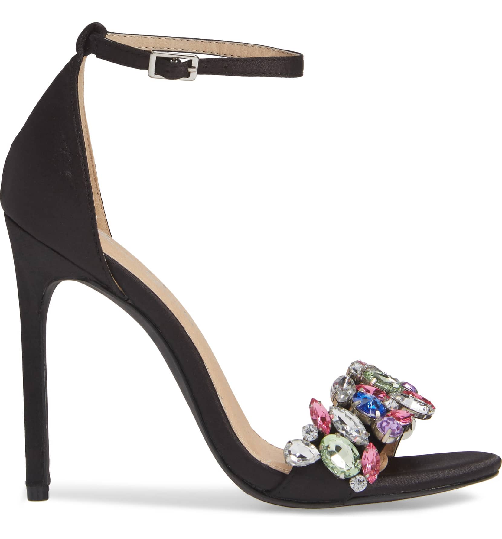 - A treasury of crystal gems adds rich color to a strappy sandal with a playfully chic silhouette