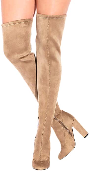 TAKE ME HIGHER - WINE VELVET The new season calls for an effortless approach to styling, transition easily with our miss new bootie! Not only do they fit like a dream, when teamed with a suede mini, it’s a look that’s sure to get people talking! TAKE ME HIGHER features a round toe, chunky heel, scuba material, thigh high construction, side zipper closure and a lightly padded insole for comfort.