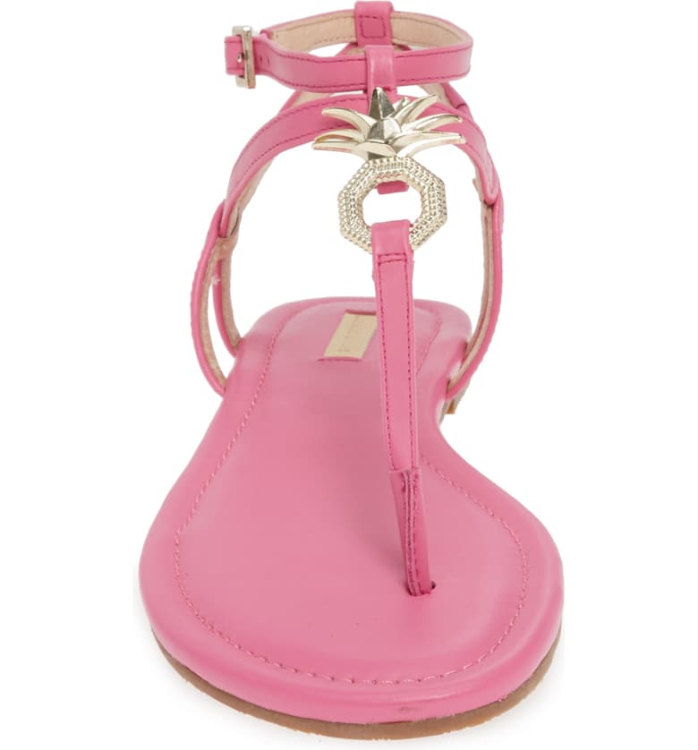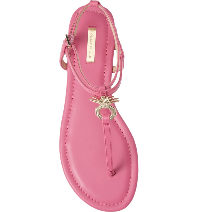 Louise Et Cie Albaran Flamingo Smooth Calf Open Toe Thong Flat Buckle Sandals