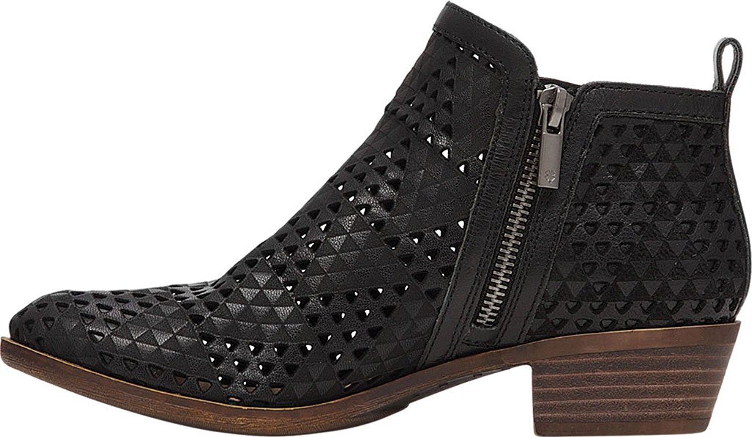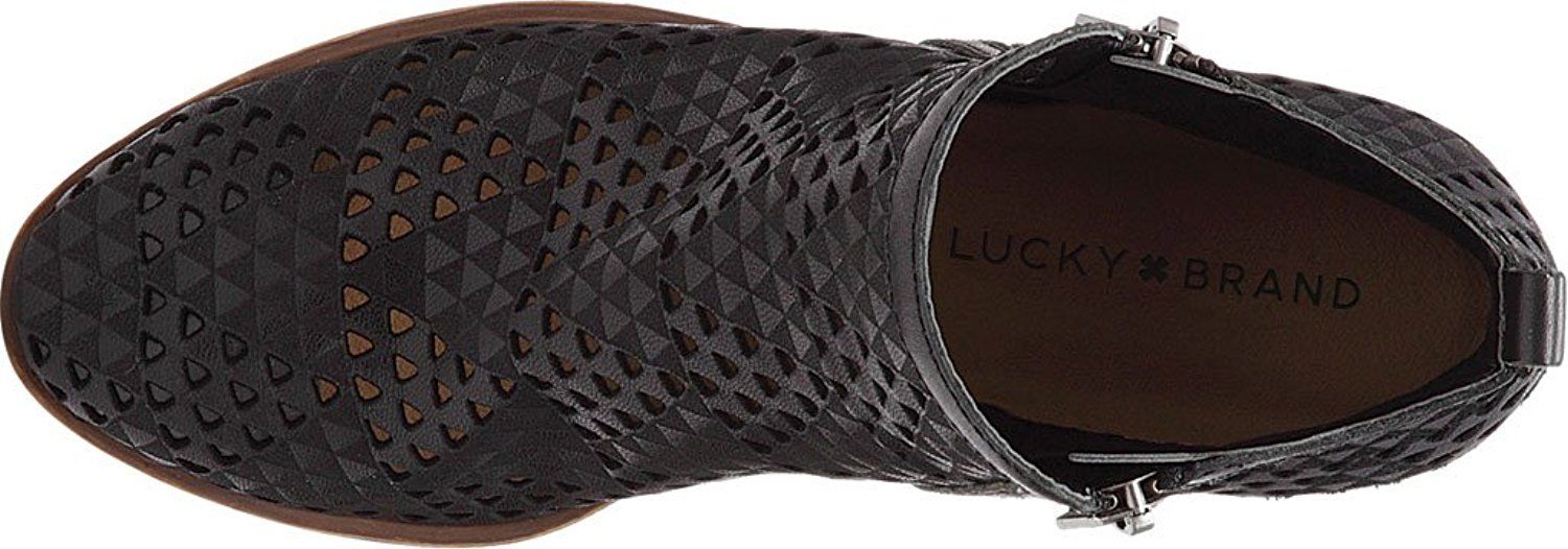 These Basel 3 Black Lugo Booties Booties feature triangle design cut-out leather upper, cushioned footbed, and a zipper on each side.