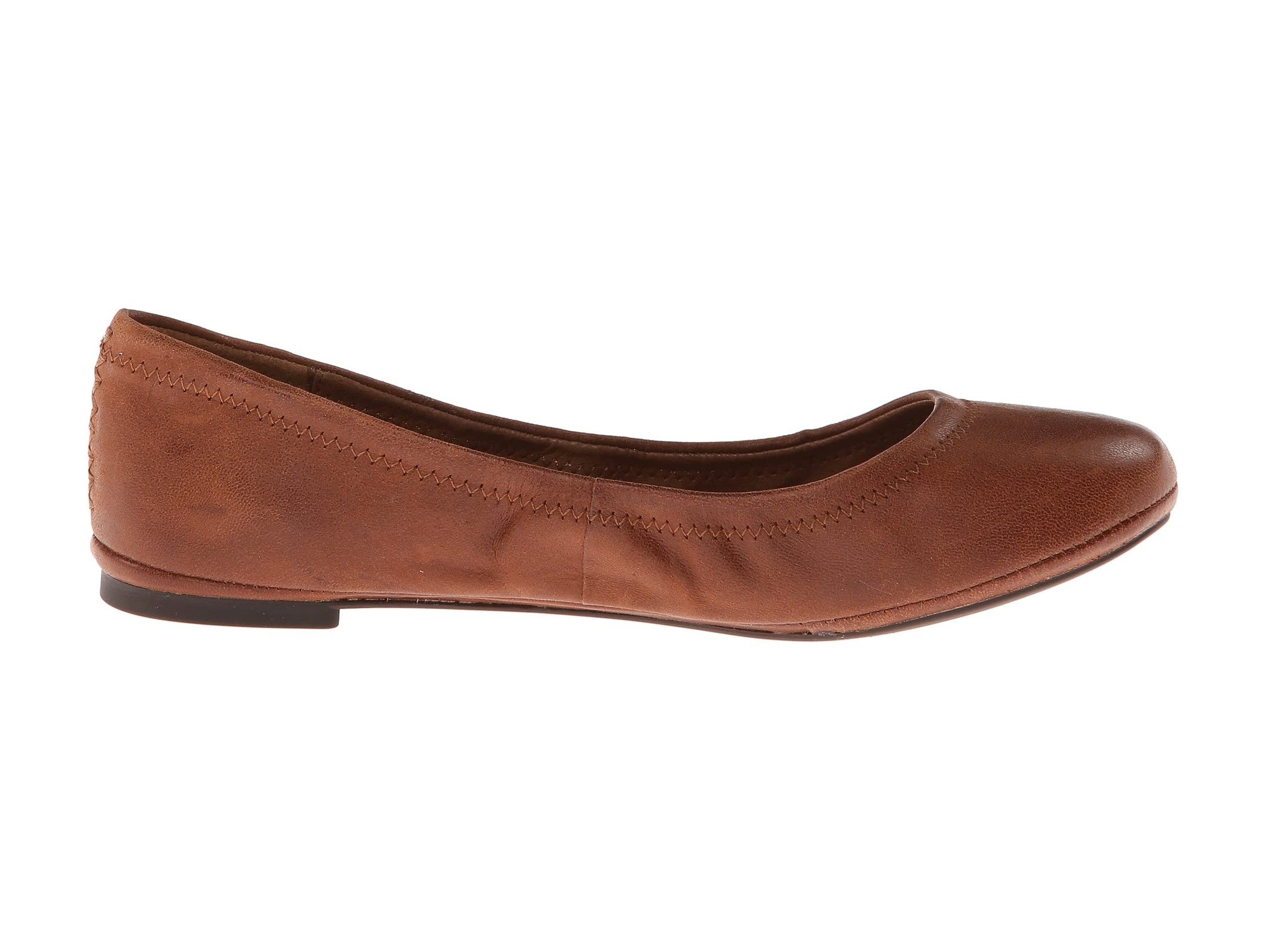 Lucky Brand Emmie Leather Rounded Toe Ballet Flats Shoes BOURBON Tan Leather