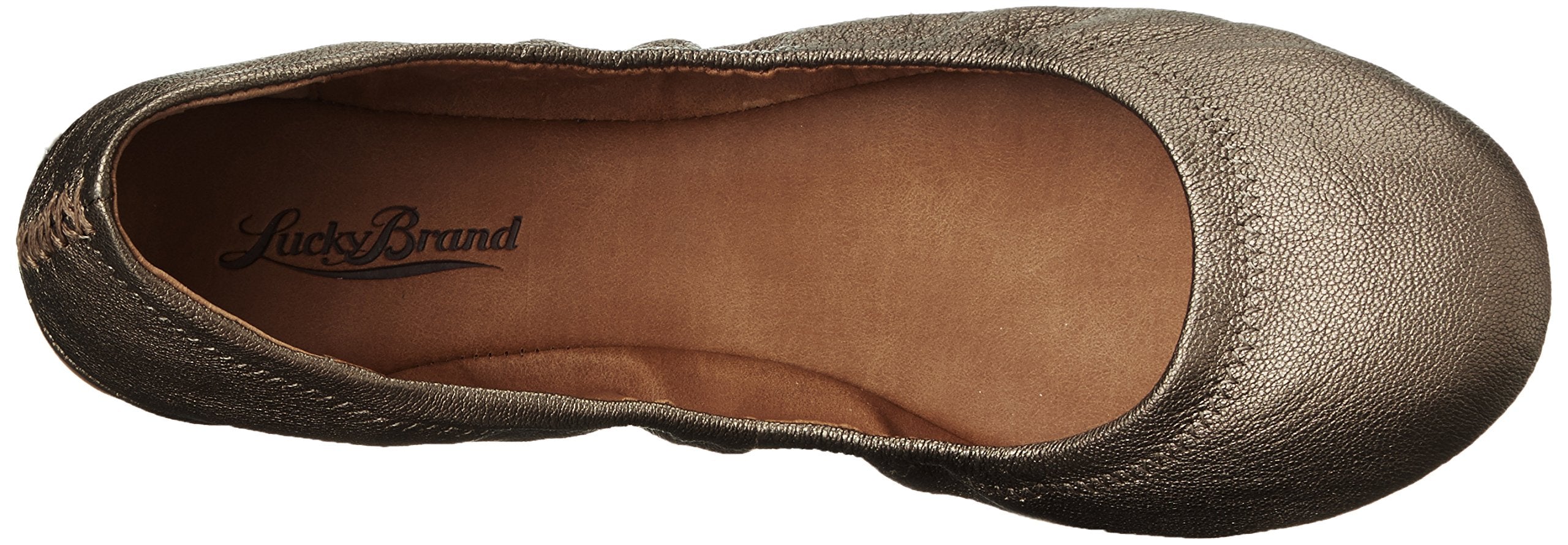 Lucky Brand Emmie Pewter Classic Ballet Leather Flat Slip On Rounded Toe Shoes Wide