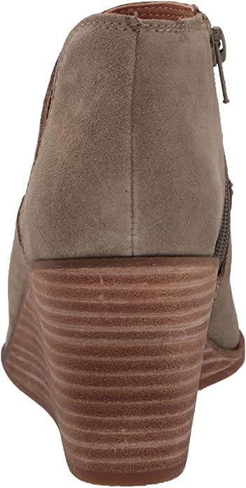 Lucky Brand Zollie Fossilized Grey Almond Toe Leather Wedge High Heel Booties