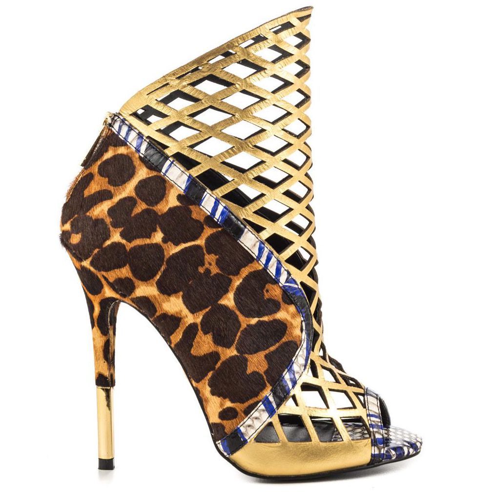 Lust For Life Foxx Leopard Multi Cutout Peep Toe Caged High Heel Stiletto bootie