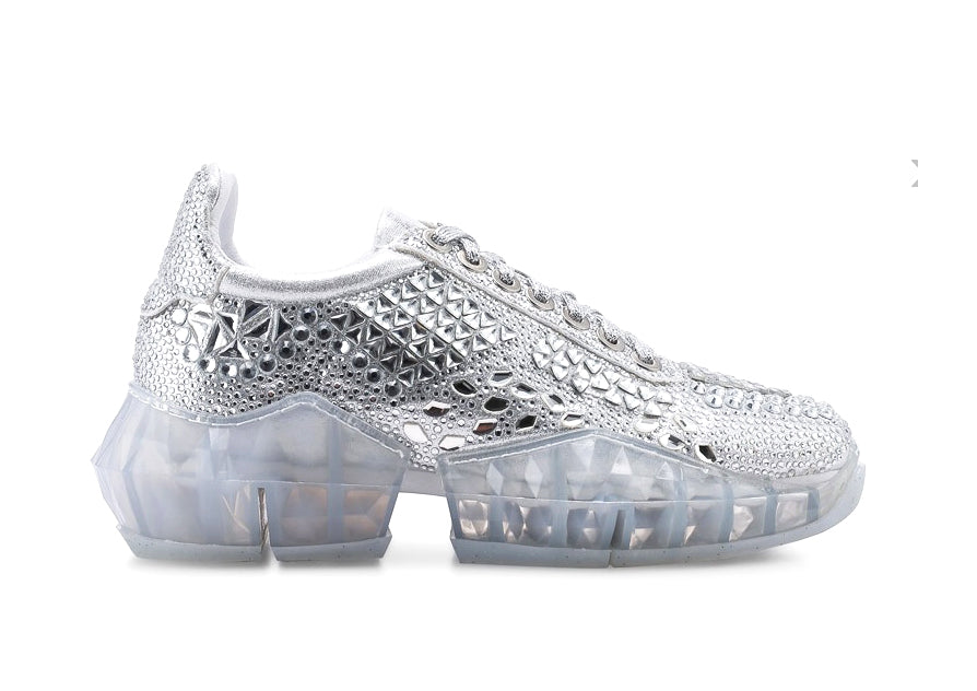 LUXEMODA BENAYGA SILVER RHINESTONE PLATFORM FREAK YOU OUT DIAMOND SNEAKERS