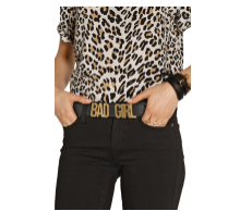 Moschino's leather 'Bad Girl' Leather Waist Belt Black Leather Gold Buckle