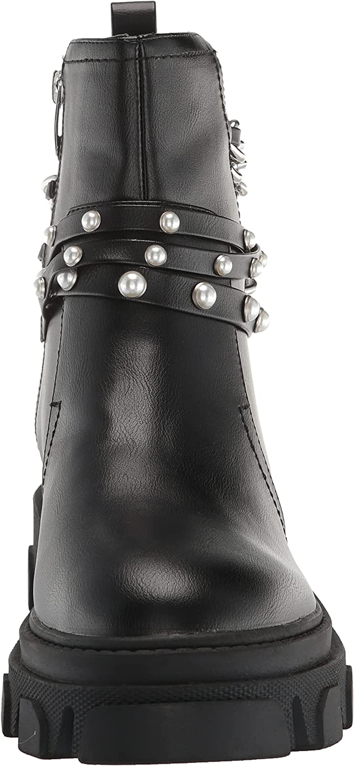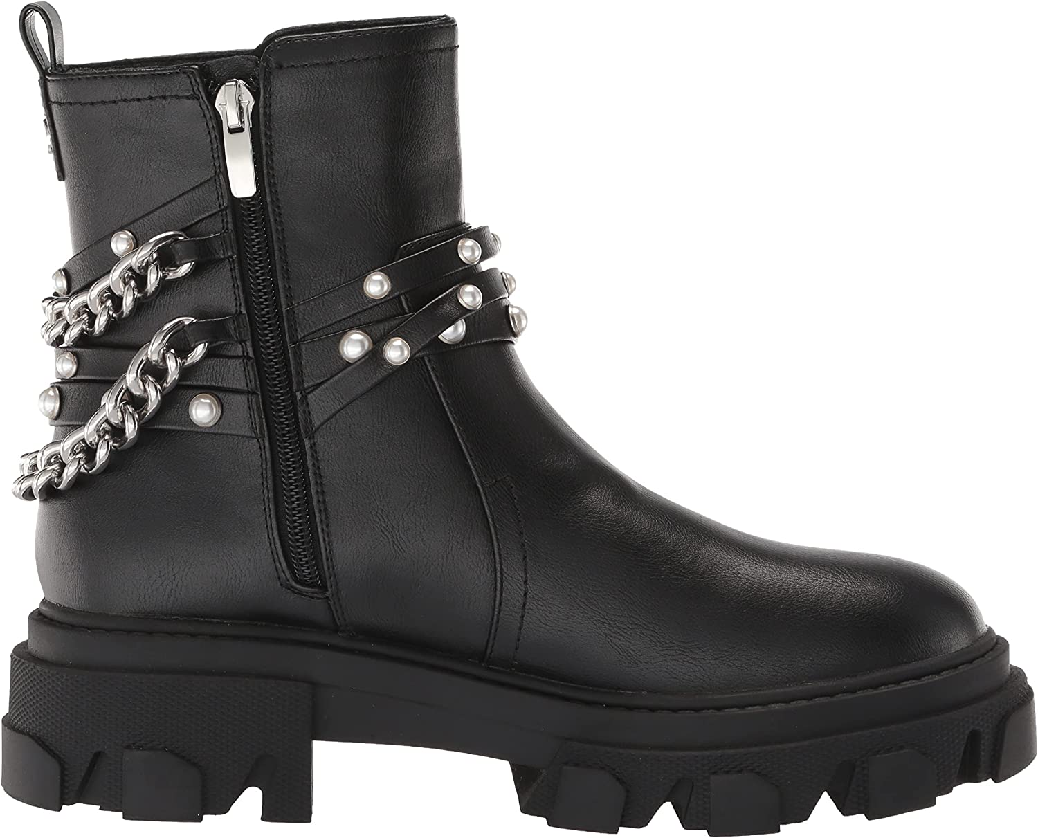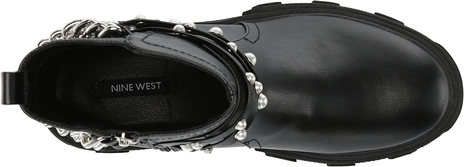 Nine West Cearlz3 Black Leather Zip Closure Chain Detailed Leather Ankle Boots