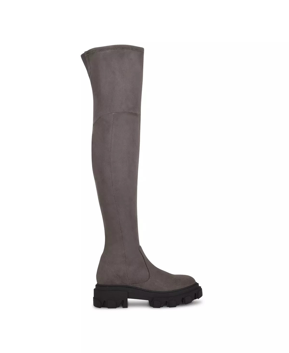 Nine West Cellie2 Dark Gray Suede Fashion Moto Chic Over the Knee Fashion Boots