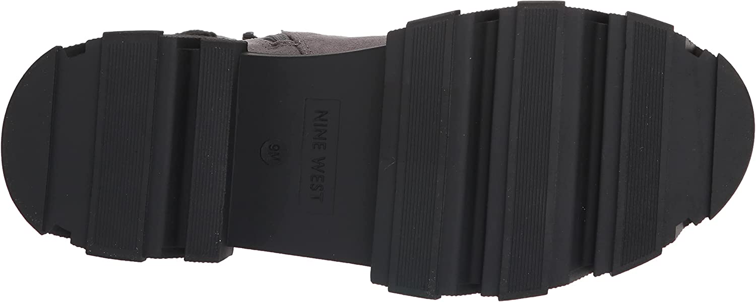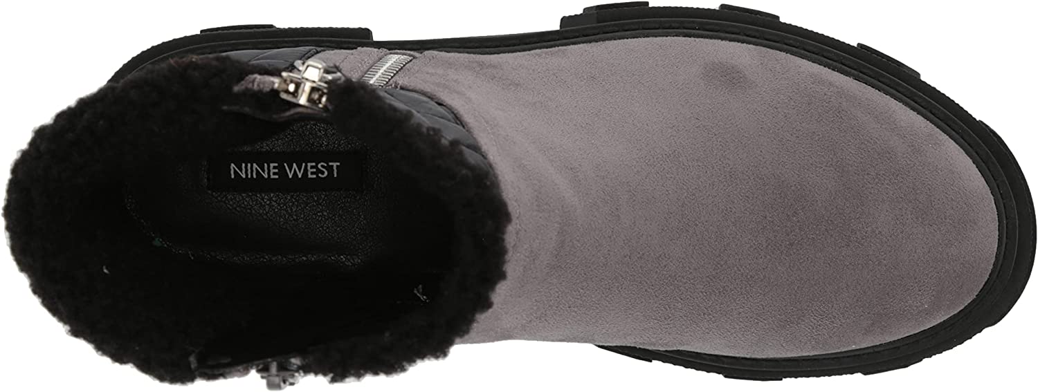 Nine West Colbee2 Grey Suede Zip Closure Rounded Toe Chunky Leather Ankle Boots