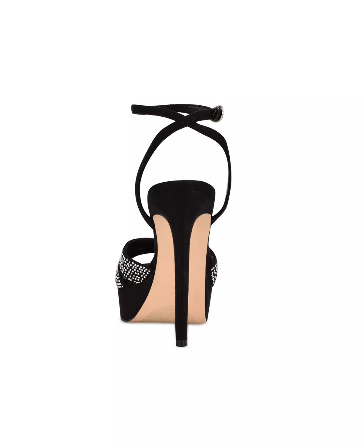 Nine West Go Big2 Black1 Stiletto Heel Ankle Strap Open Toe Dress Heeled Sandals