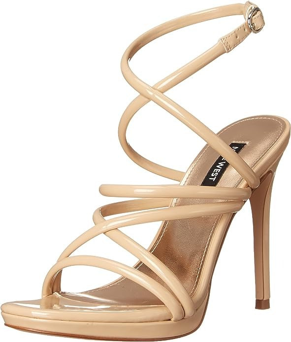 Nine West Lexy 3 Light Natural Rounded Open Toe Buckle Stiletto Heeled Sandals
